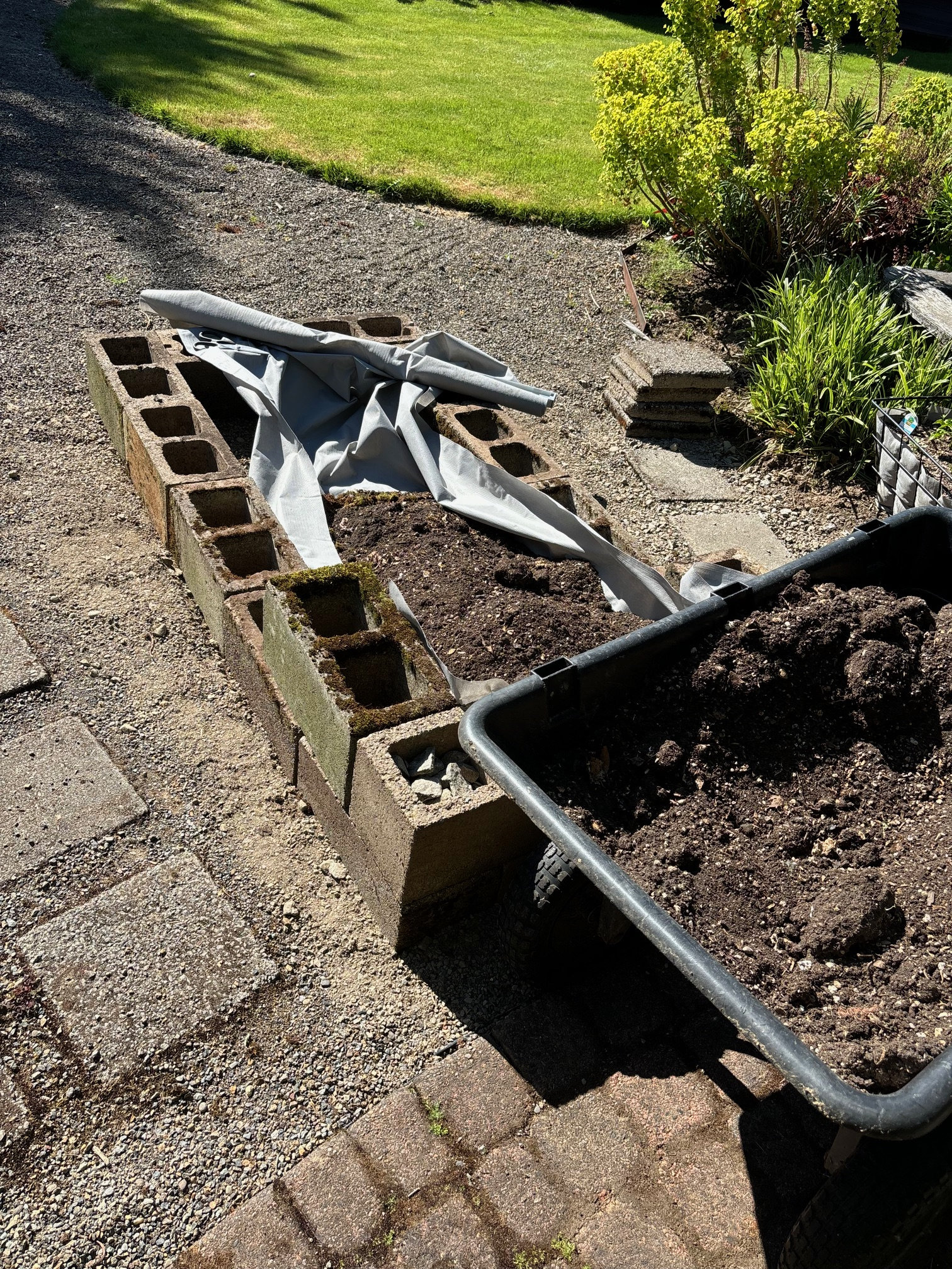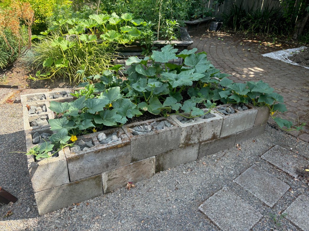Other than that the garden looks great even the temporary repairs. Concrete block gardens can get hot which isn’t good for the microbes and worms.