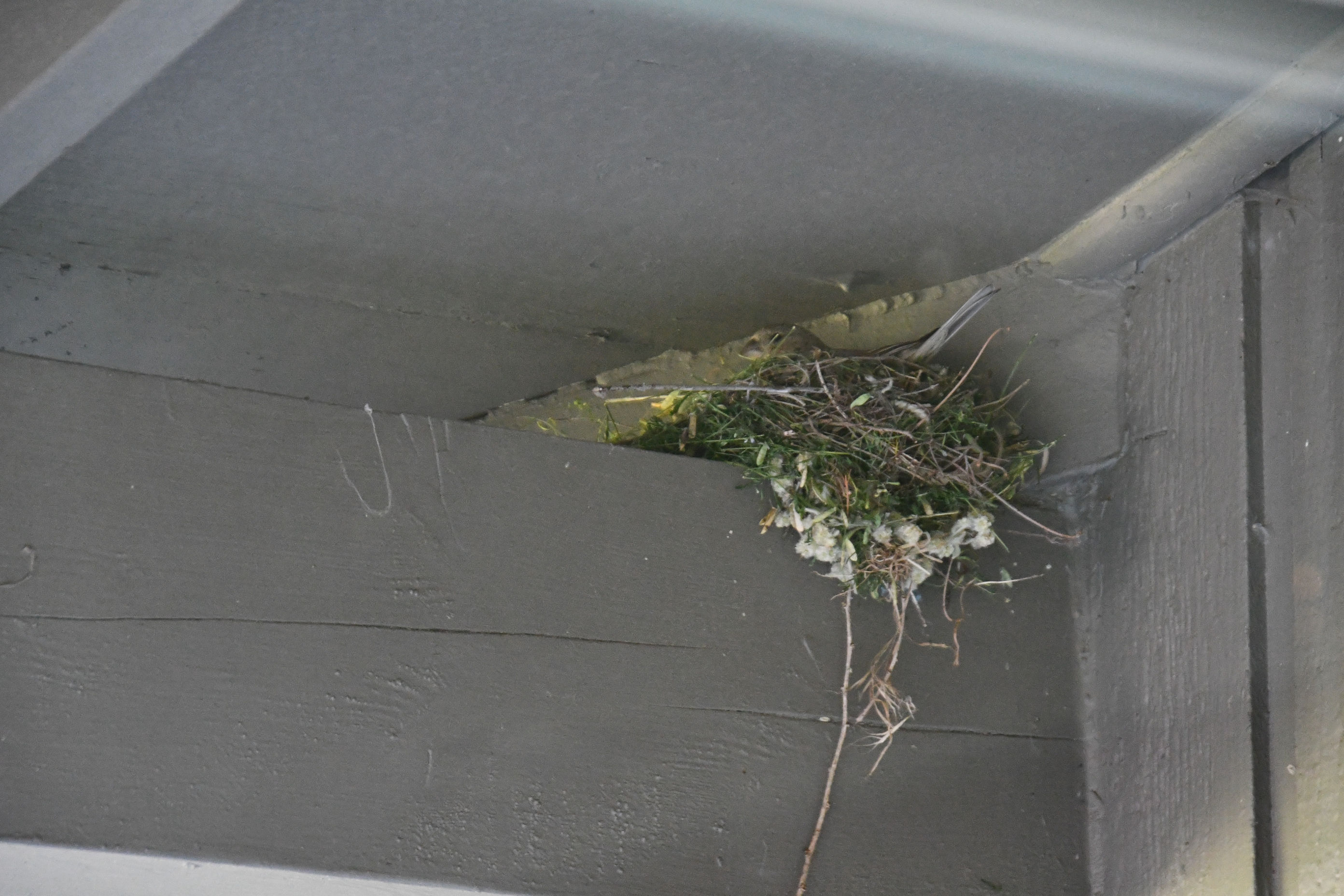 But every couple of hours, it all fell to the ground. She tried a few times to build a couple feet away on the same beam, but that nest didn’t work either.