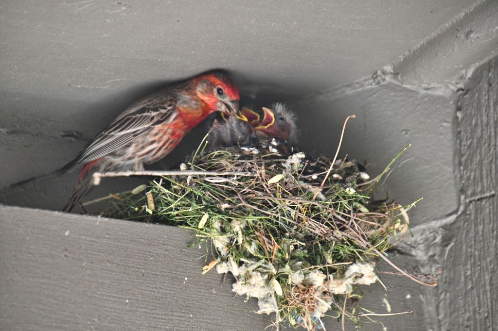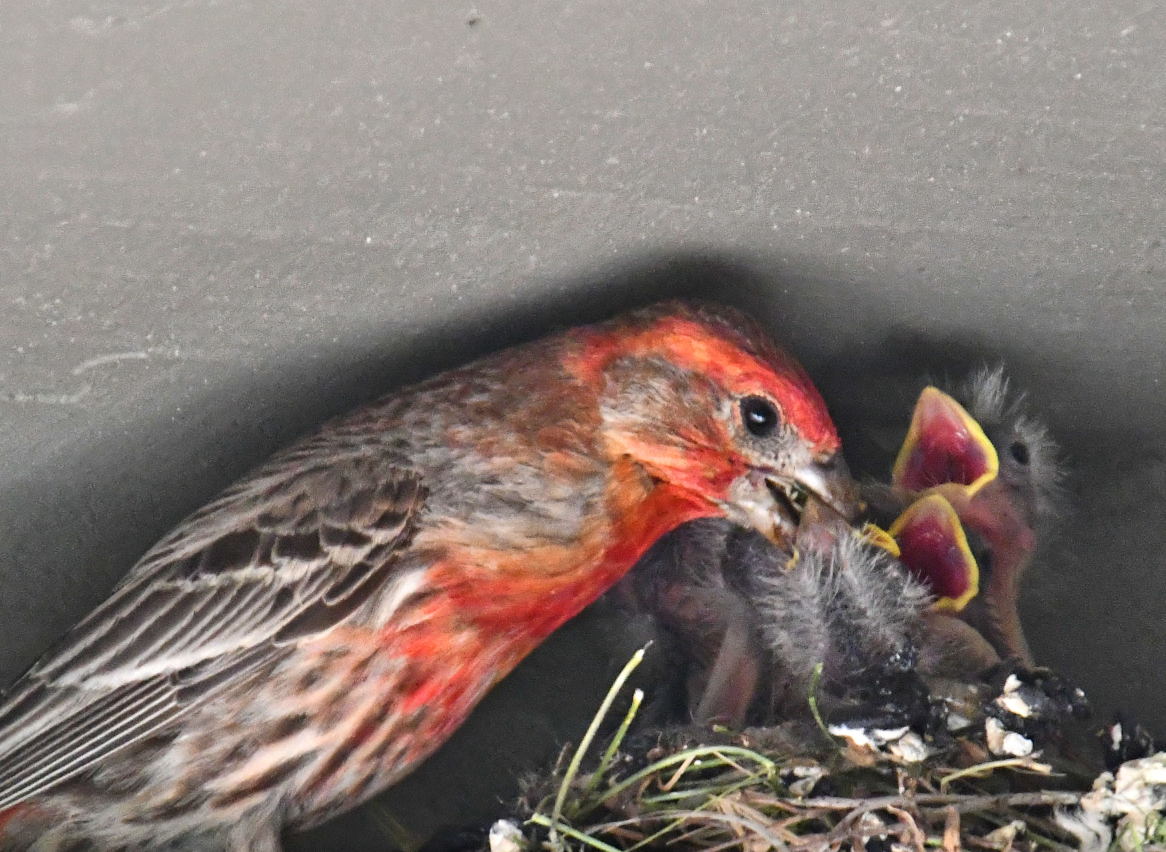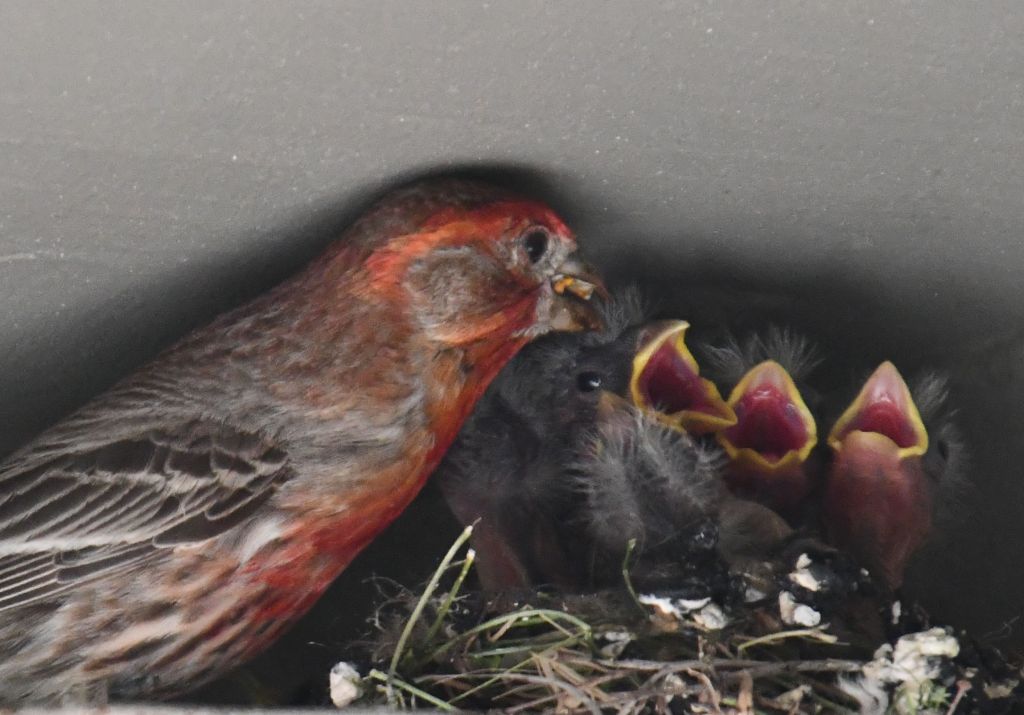 Ha ha!! That red gives them a pass. So true! Any colour makes me love a bird a bit more. We are so silly. I was worried for a little while that the babies would be noisy. I had a nest of Violet Green Swallows inside the attic ventilation outside my bedroom in the Rainier house. Oh my gosh!! Those little babies about made me insane. Their darling little chirping, which was lovely for the first two days, became maddening after two weeks. So loud and incessant. The House Finches barely made a peep, and were gone very quickly. So I’d prefer a finch to a swallow I guess. Needless to say, I repaired the hole in the gap that summer to prevent a repeat experience.