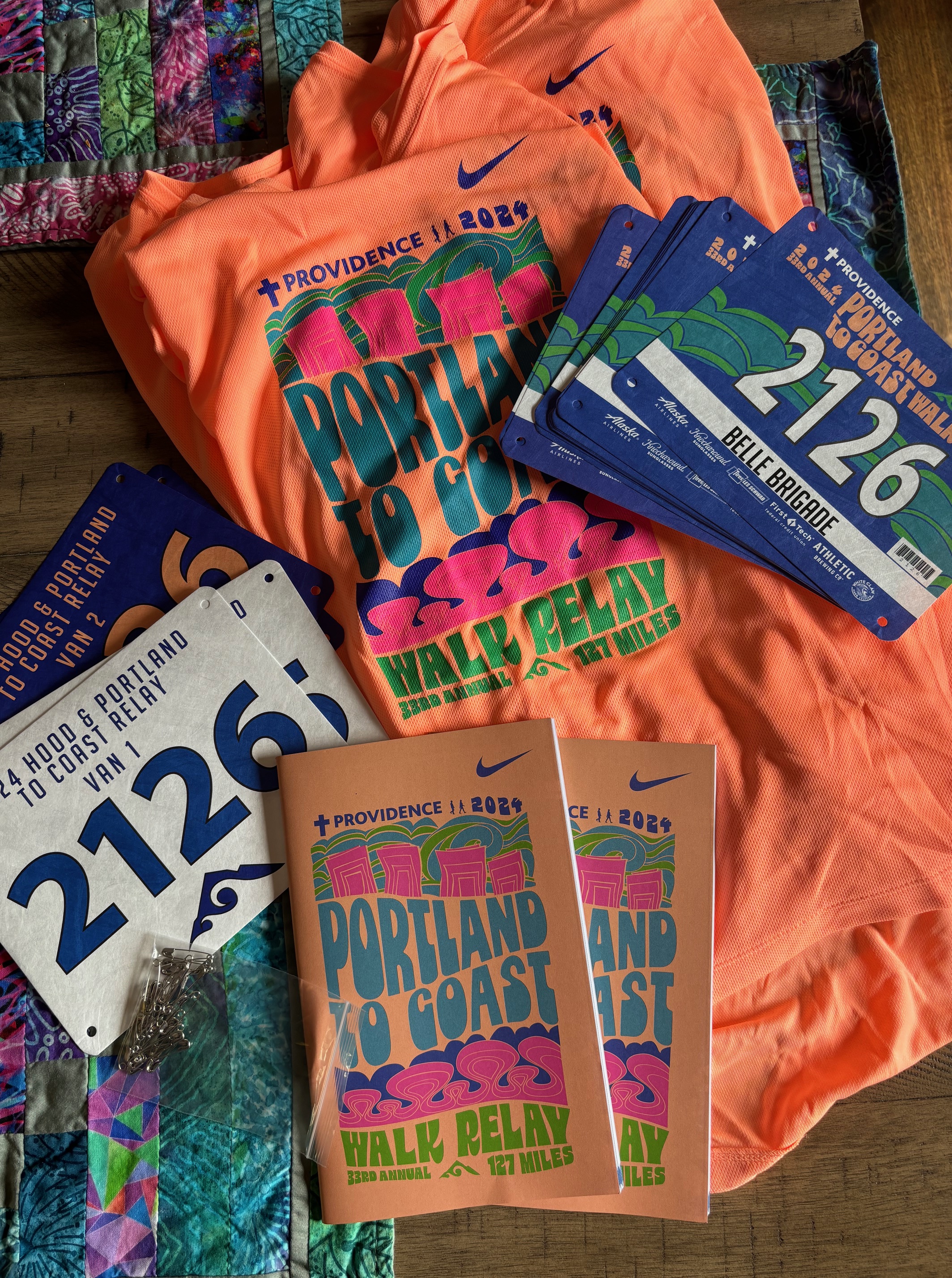 One last thing. My race is coming up. This is my last year as Captain of the Belle Brigade and that’s both sad and great. I was able to go pick up the team’s race packets. That includes our T-shirts, racing bibs, race handbooks, free gifts, and more. The race is August 23rd and 24th and I have been training almost every day to get ready for my legs in the 120-mile relay.