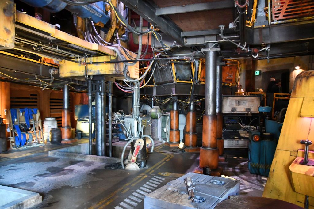 All of the following images are from inside the docking station as we slowly moved along the line to get on the ride. It looks for all the world like a mechanics shop.