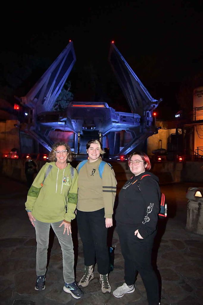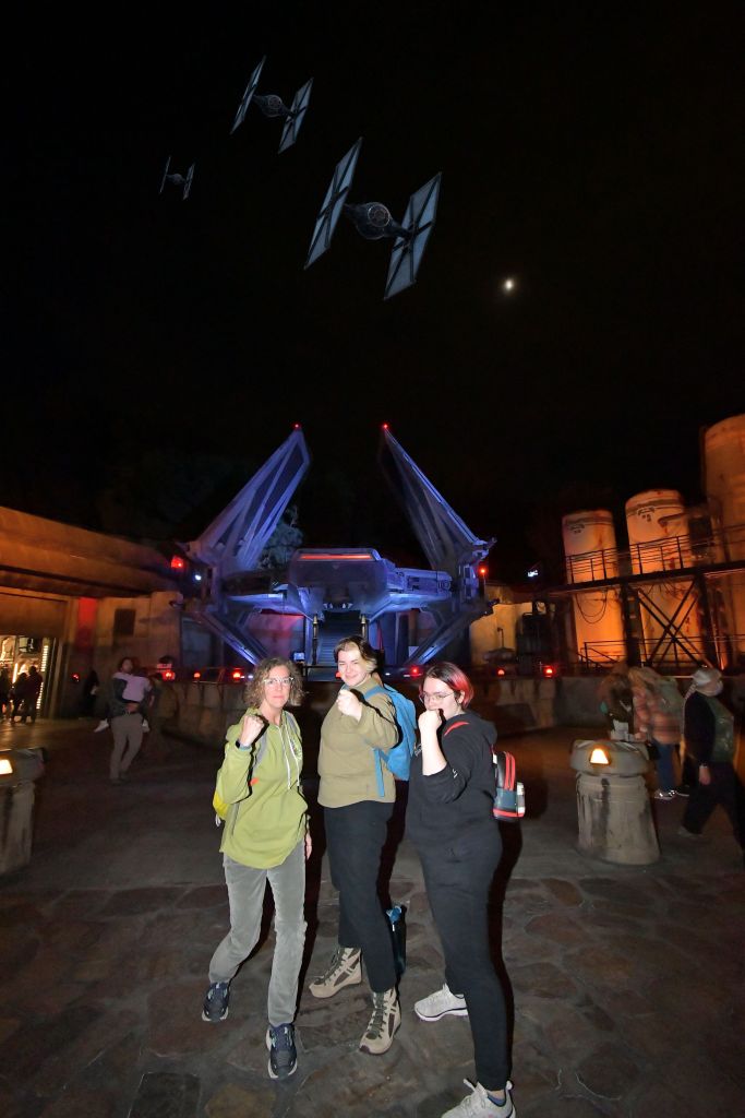 The ride, Smuggler’s Run, was something. A group of six went on board. Two pilots, two gunners, and two engineers. Each one had a specific job, they told us. “The success of your mission depends on you doing your job right. Now go!” Doors slid open to a cockpit and six seats. “Go! Go!” We scurried in and each found a place to sit while the doors closed behind us, and before we knew it, the ship was taking off and all six of us had no idea what we were doing.