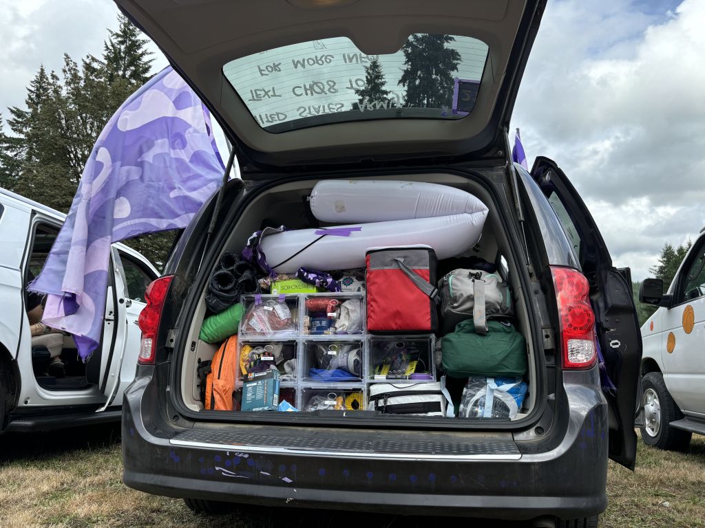 Thanks for coming along! What a crazy fun adventure this is, every year. It’s always uncomfortable, and we are always hungry, and stinky, and cramped, and inconvenienced. And it lasts nearly three days because we gather on Thursday to get our gear loaded, and our uniforms and bibs, and pack the vans, and decorate, then eat, and hug everyone goodbye and a few hours after that Van 1 begins. So why do we do it?