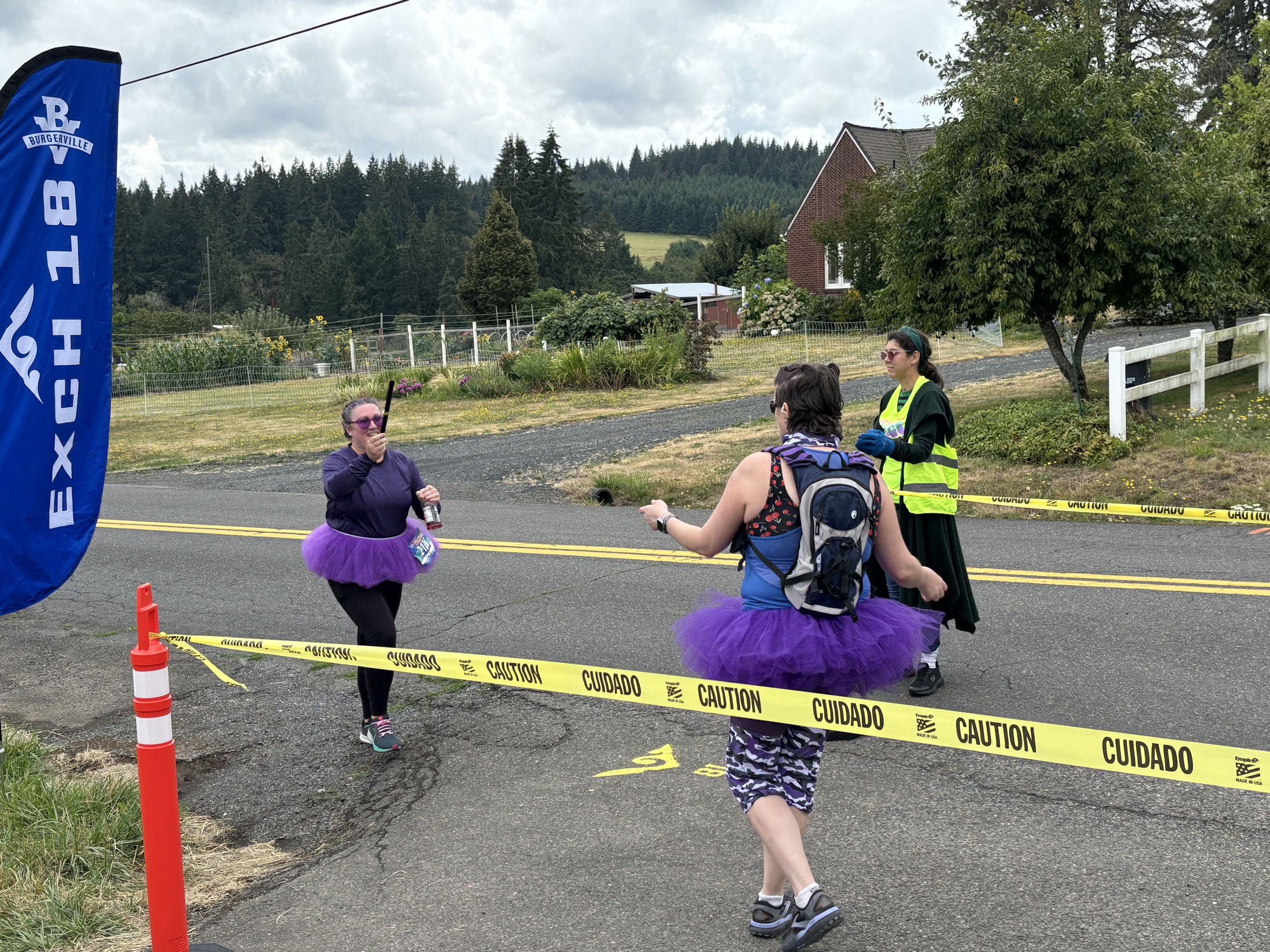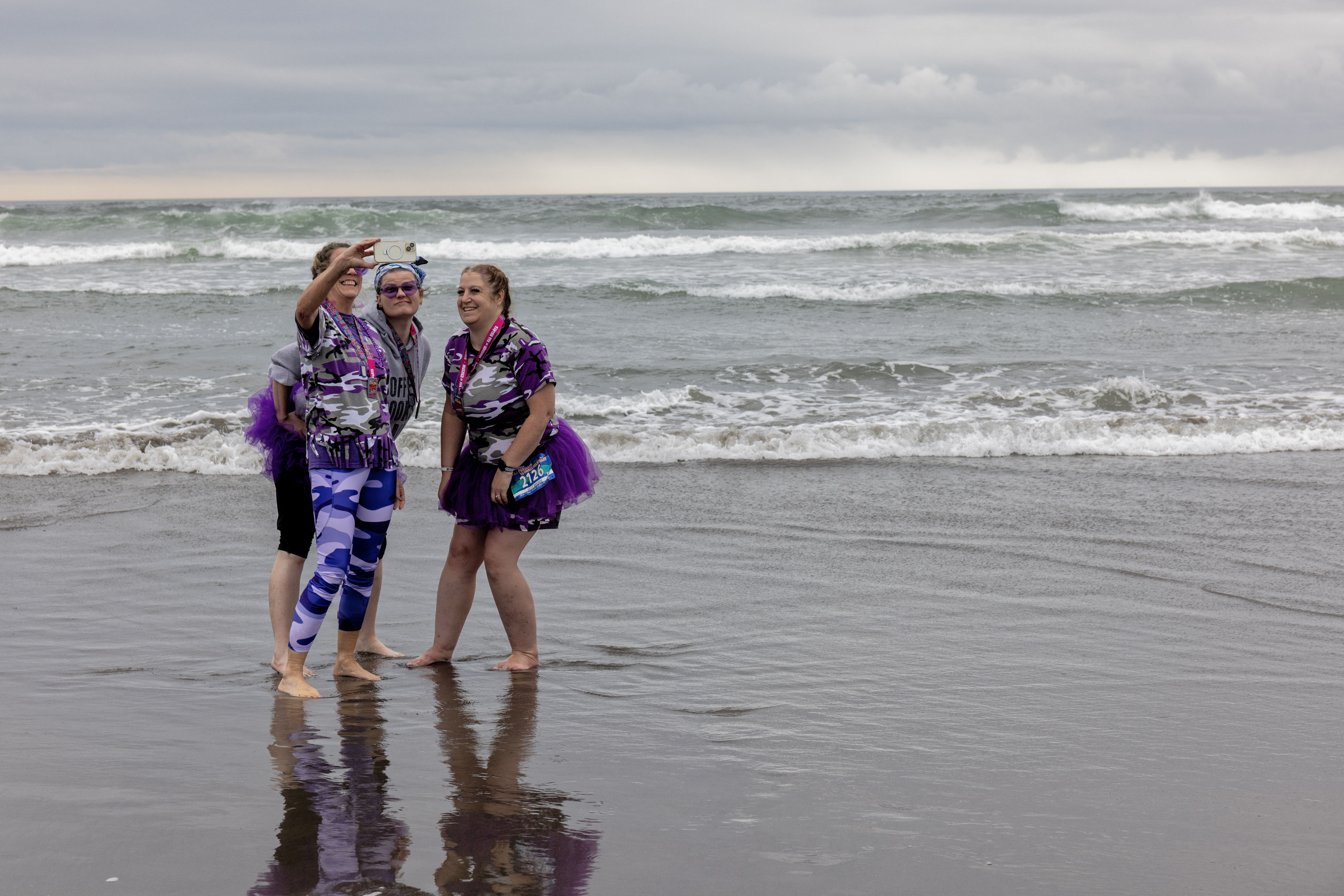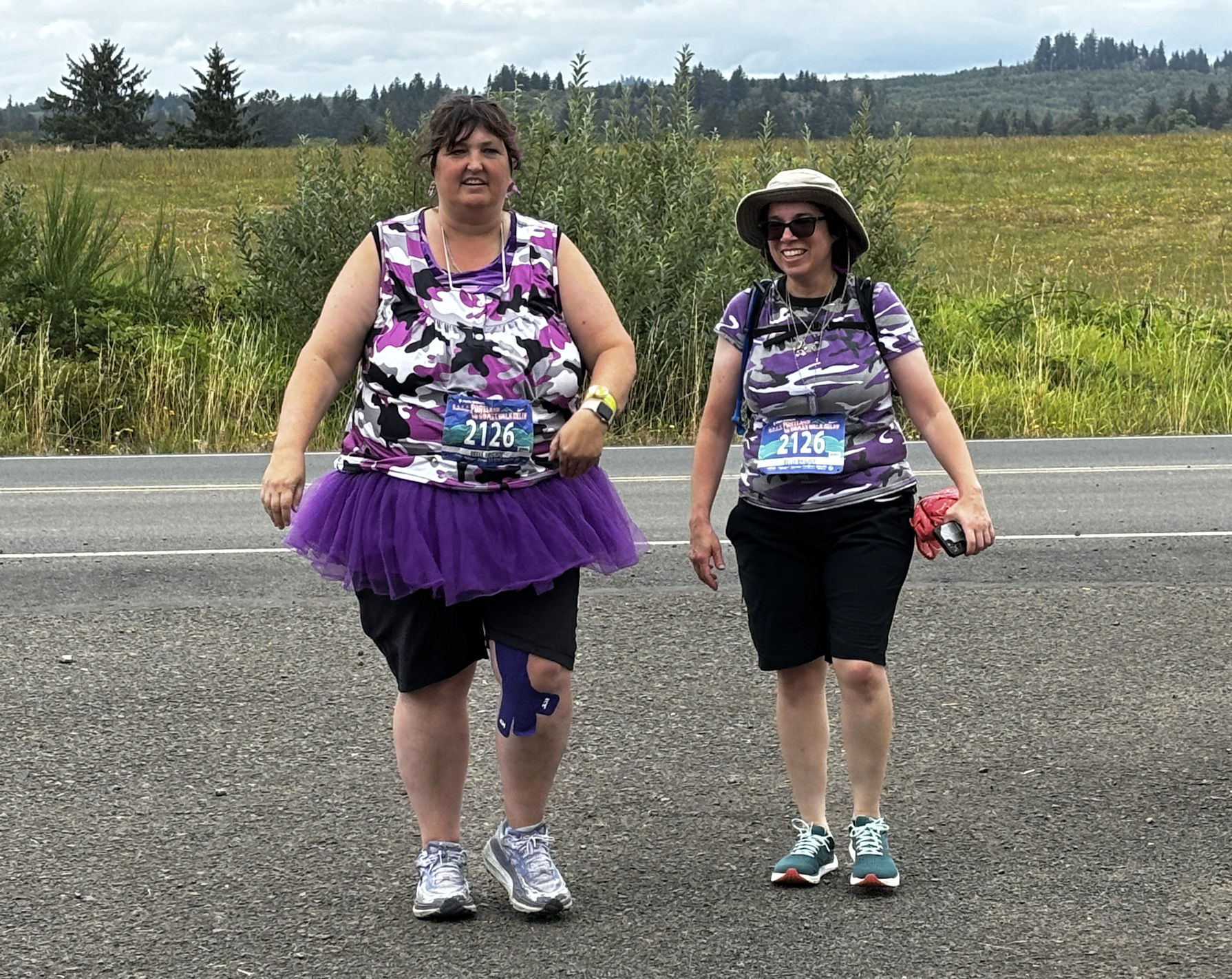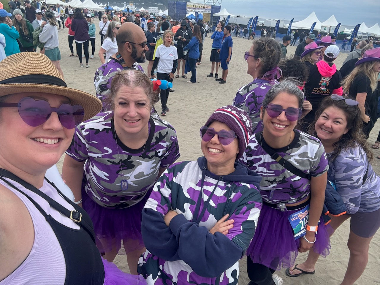 As you have noticed, we are glaringly purple-themed. Since we’re all veterans, we chose the purple camouflage, and then anything else purple we can wear, like purple shoes and purple earrings and purple tutus. (Even the van driver wears purple!) Many of the other teams have their own themes, and there is often an element of humor.