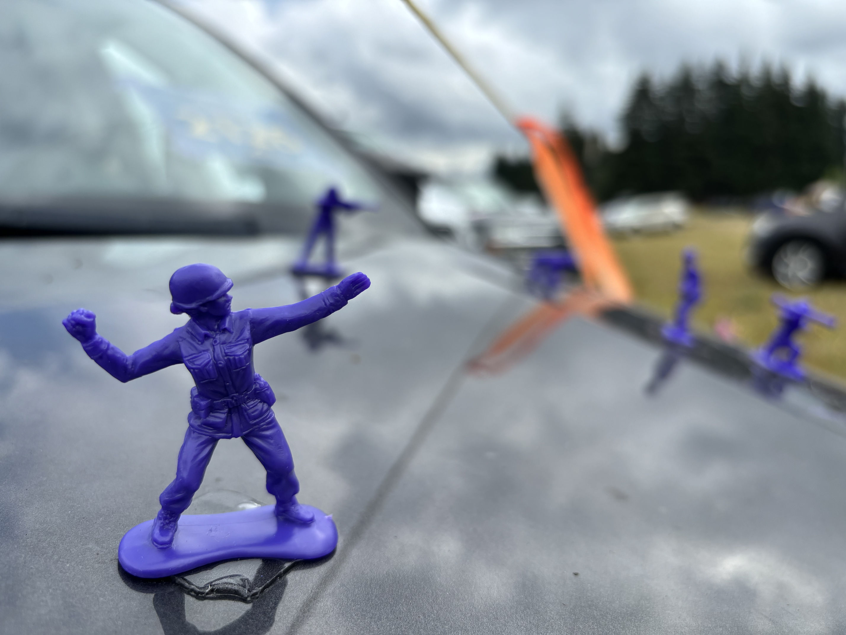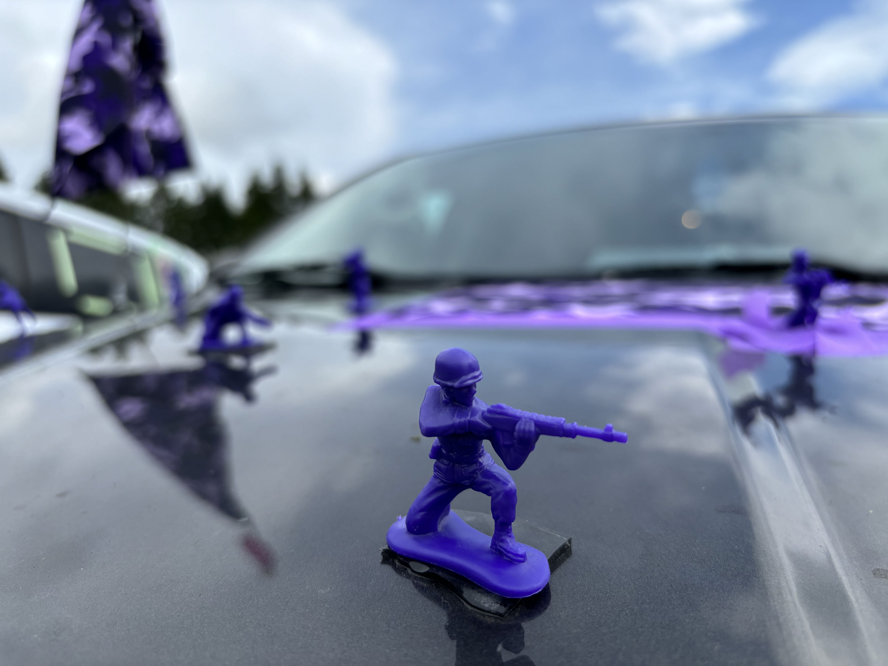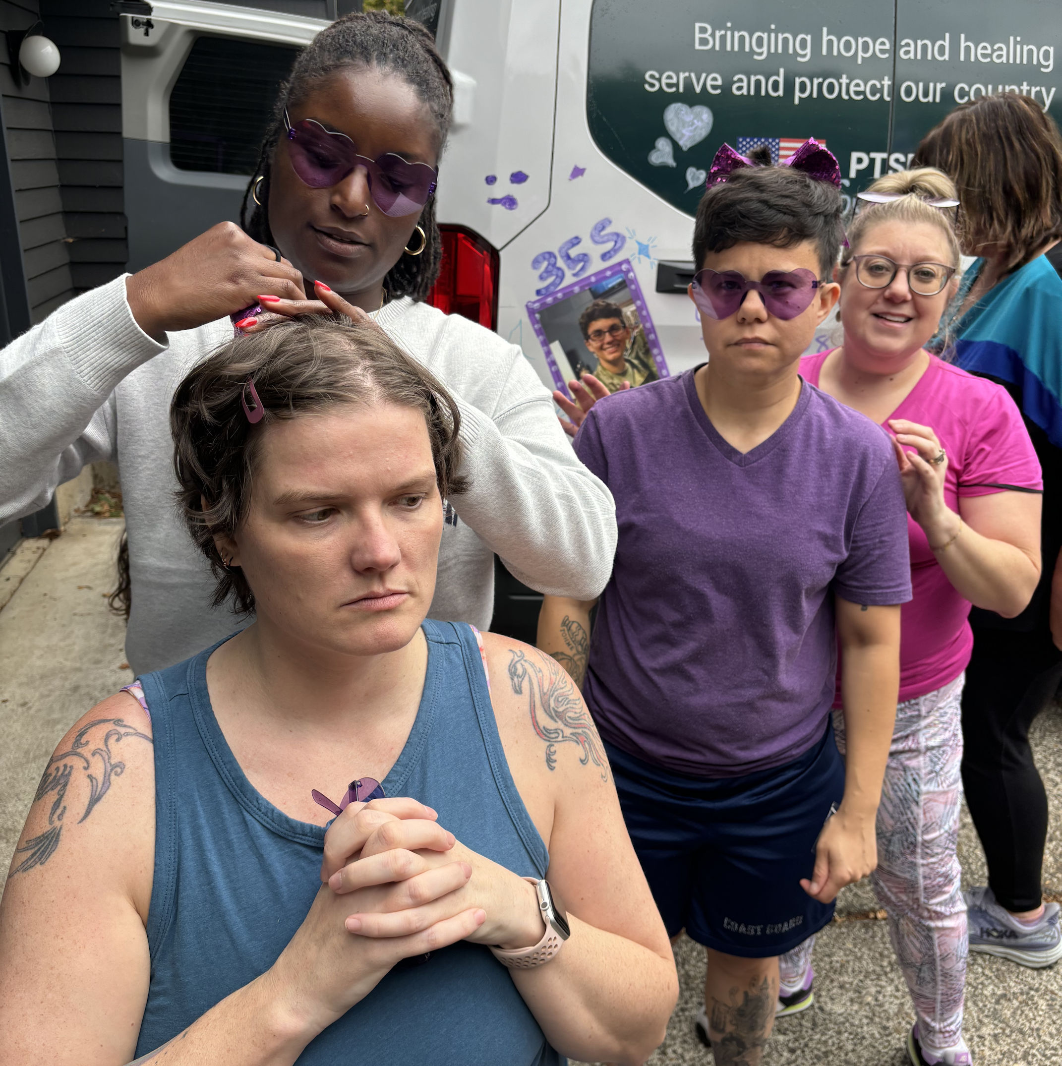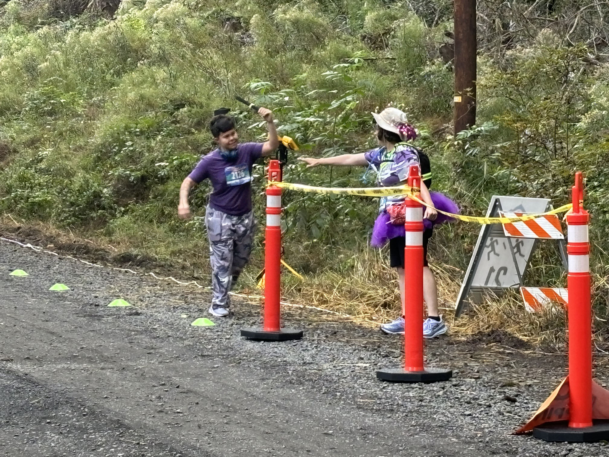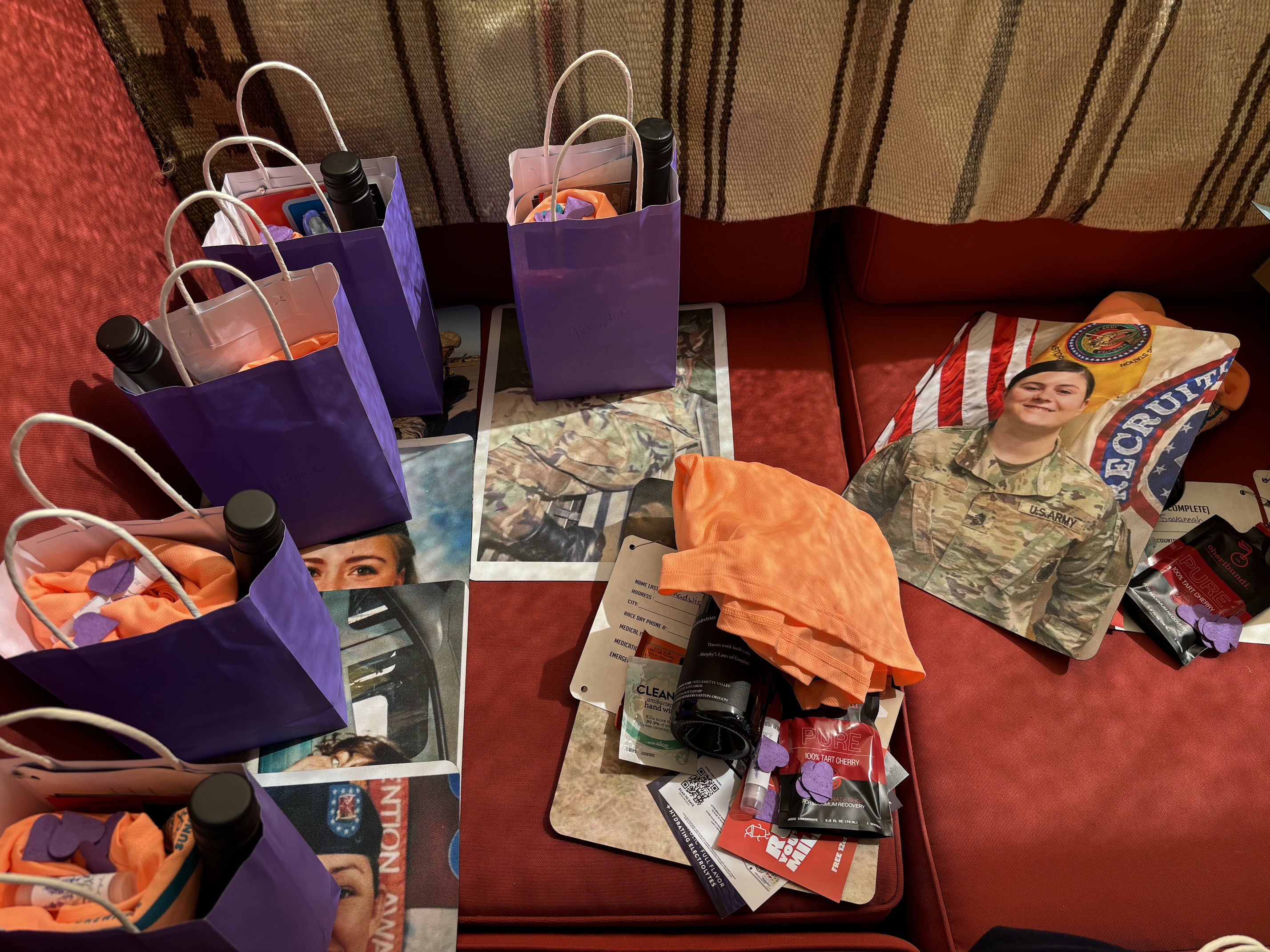 As you have noticed, we are glaringly purple-themed. Since we’re all veterans, we chose the purple camouflage, and then anything else purple we can wear, like purple shoes and purple earrings and purple tutus. (Even the van driver wears purple!) Many of the other teams have their own themes, and there is often an element of humor.