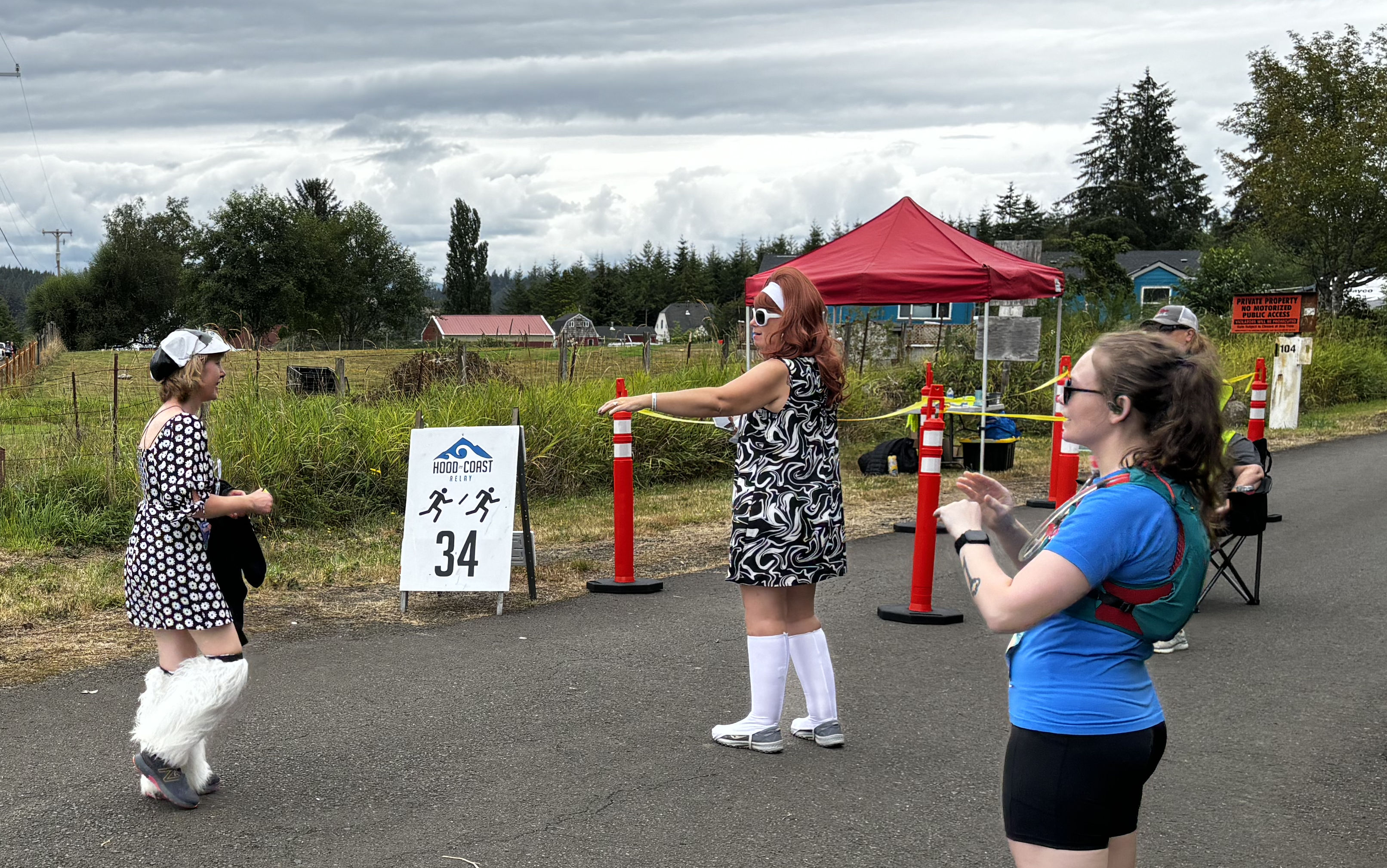 This year it was already becoming daylight when Alexandra started us off at our official start time. Usually, we start in the dark. But a two-day race means that we experience all times of day and everyone ends up in the dark eventually. I am on Van 2, and our van starts during midday on Friday. Last year, temperatures were in the 80s (27-29 C) and racing in the direct sun was really hard on us. It was even hard for me and I LOVE the heat and sun. This year was cool and rainy, and my ladies were SO HAPPY. I thought they were nuts to prefer rain, but as long as they are happy, I am happy.