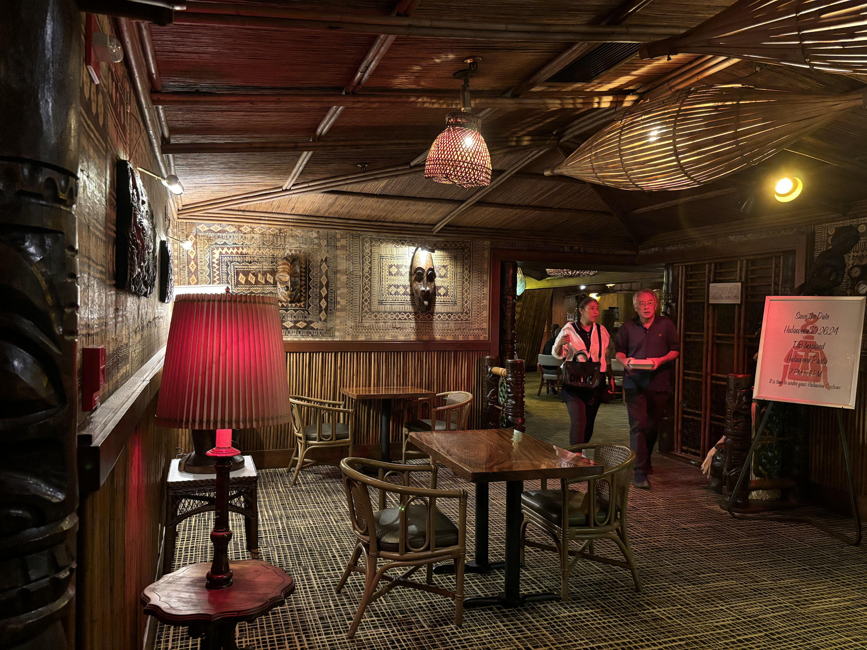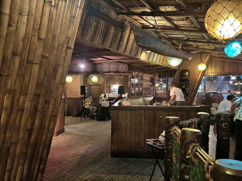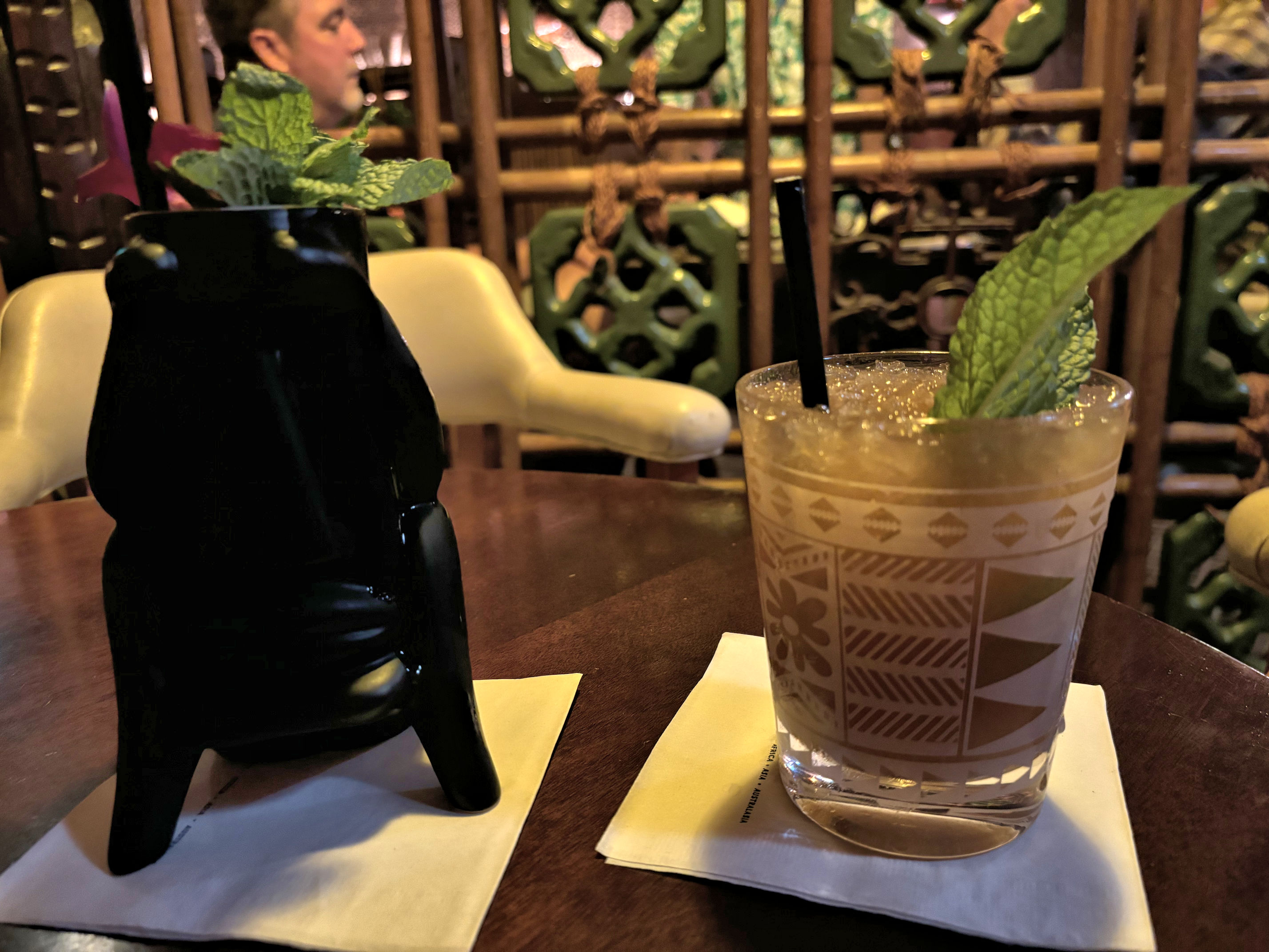 We were ready to try one more stop before we called it a day, and that would be a nearby bar called Trader Vic’s. I had looked it up prior to the trip and learned that this establishment, though in an unexpectedly pedestrian setting – a Hilton Hotel – is a fun piece of American history. At first we could not find it and a hotel employee helped direct us to the basement below the lobby.