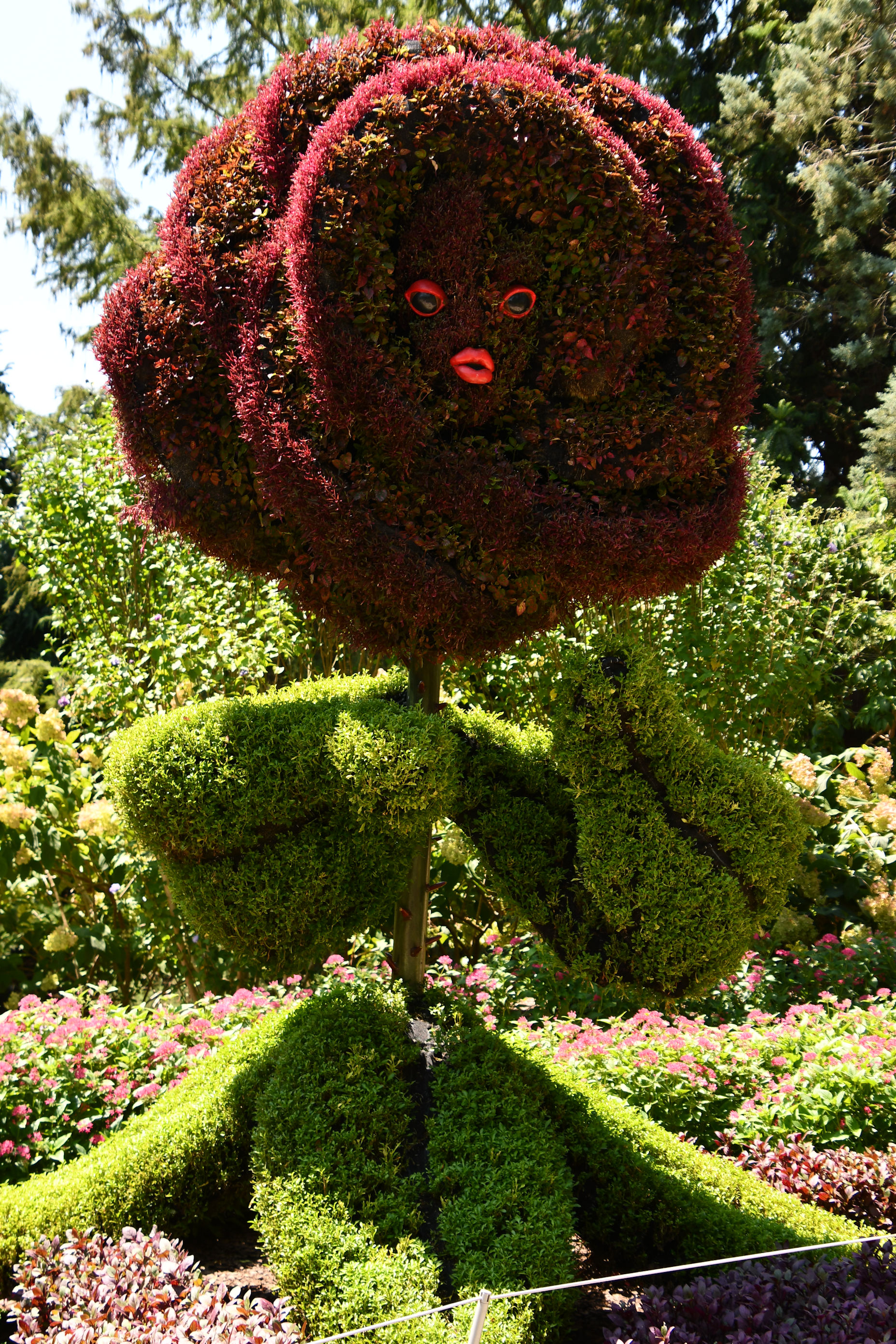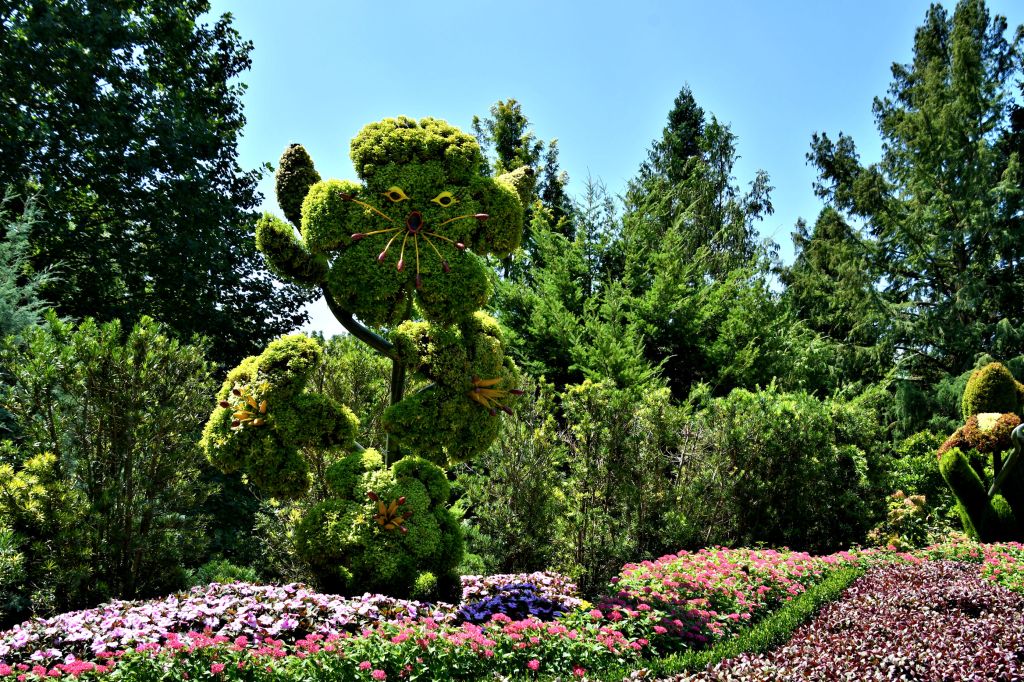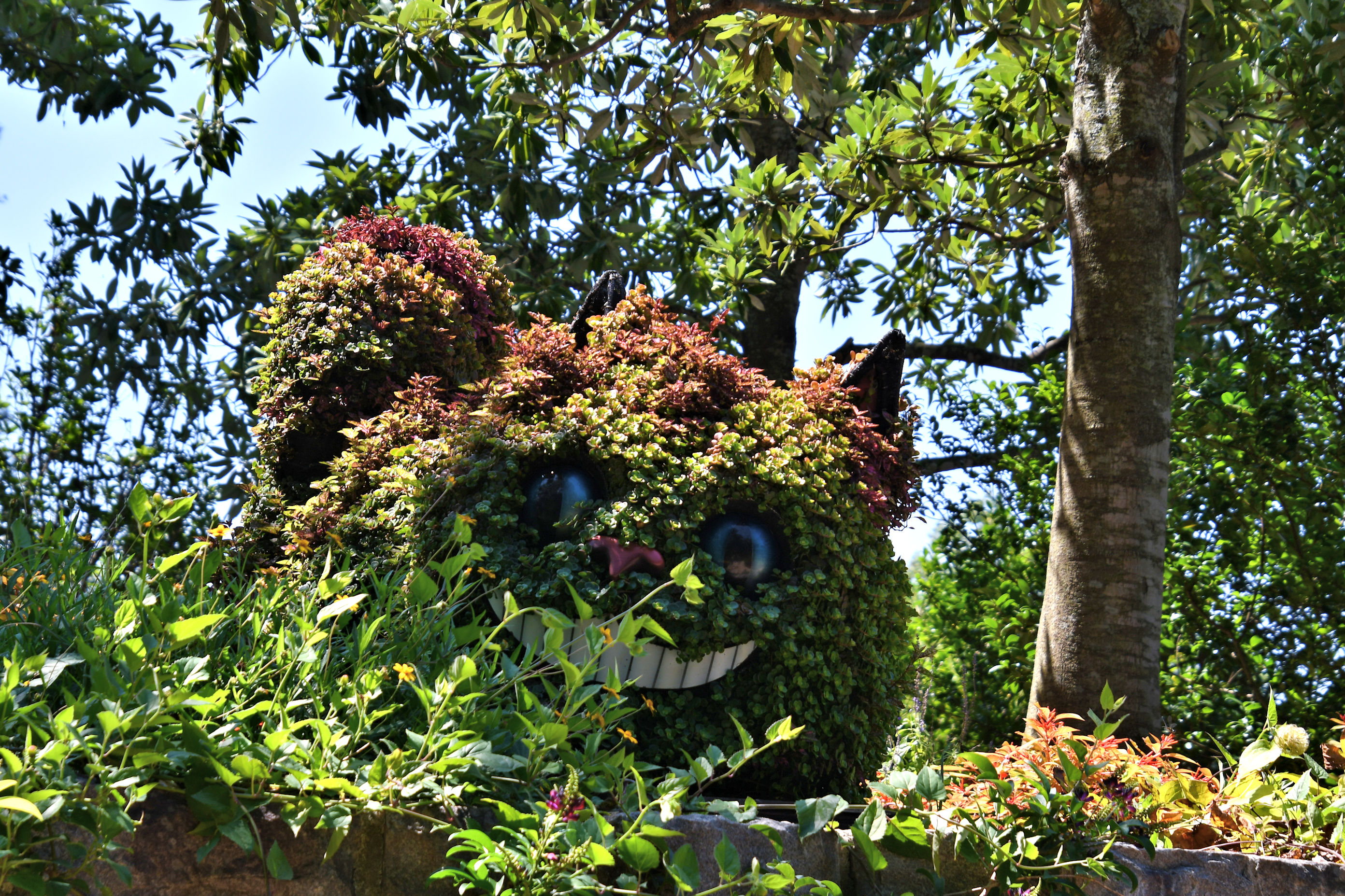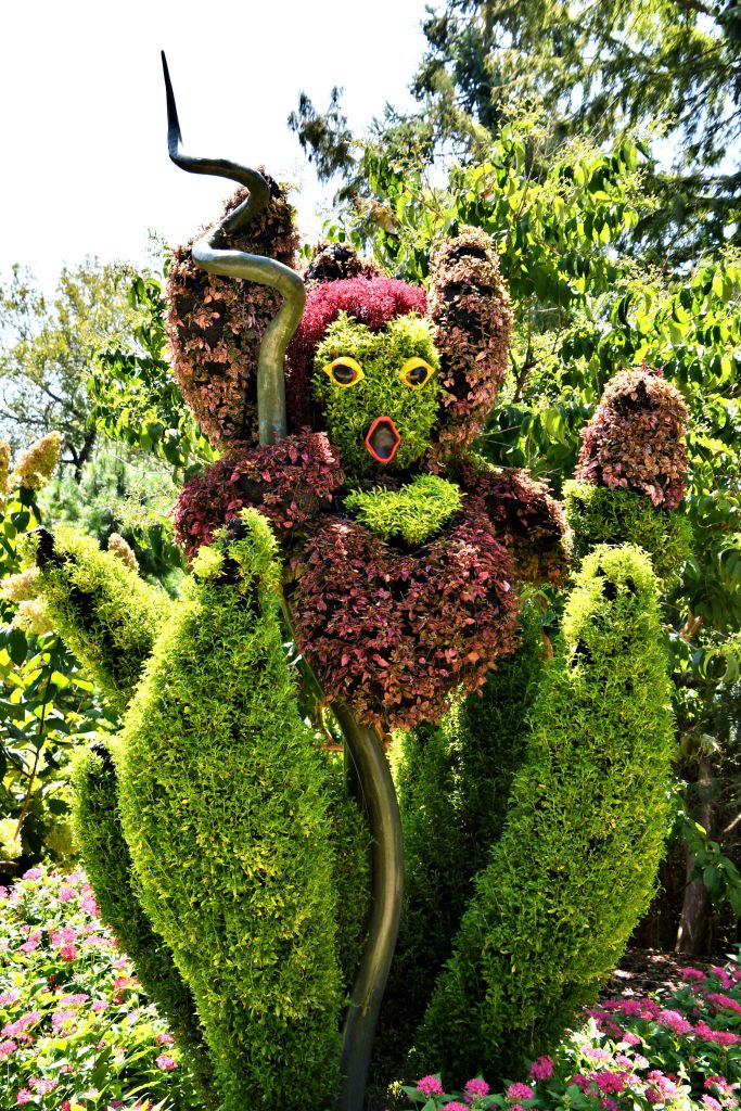 The botanical garden was featuring “mosaiculture,” a type of gardening that looks like topiary, but is really thousands of small plants placed over steel structures. These are all living plants, and must be cared for, fed and watered and trimmed. The theme was Alice’s Wonderland Returns, so you will recognize many characters, as we did.
