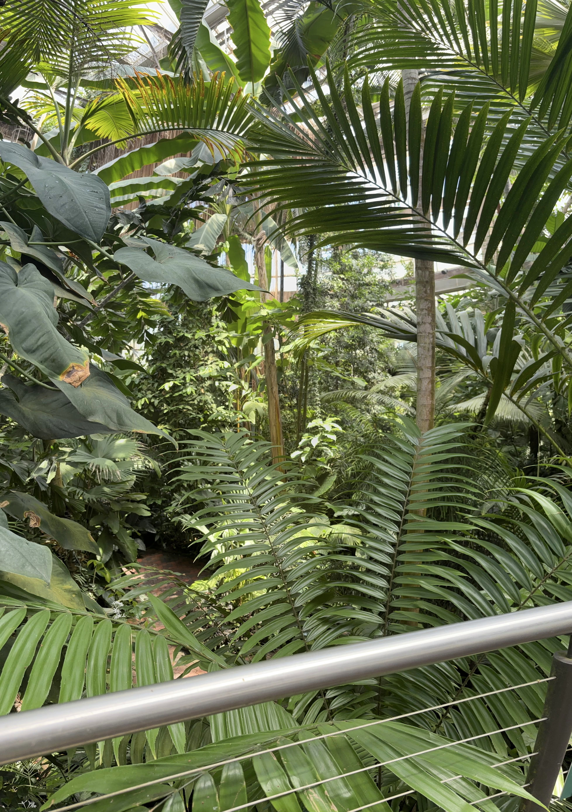 We stepped into the enclosed, climate-controlled tropical garden of the conservatory, and it was cooler! The first time in my life I ever stepped into a tropical garden section and drastically cooled down. What a relief.