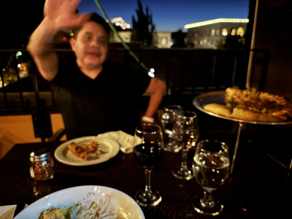 We were told the rooftop bar was closed. When no more information was forthcoming, I couldn’t help myself and asked was it long term, or just for tonight, or if they were short staffed? With a blank disinterested face, she said, “For the heat; it’s for the safety of the staff.” Which seemed fishy to me, because the staff on the roof remains mainly inside the bar. Customers must go inside to order their own food and drinks, and carry their drinks to their table. The food is cooked below in the main kitchen, and the staff only appear to deliver food and to clean tables once a party has left, without visiting tables while you eat, not even to refill coffee. The customers do sit out in the heat the whole time though. I suspected it was something else.