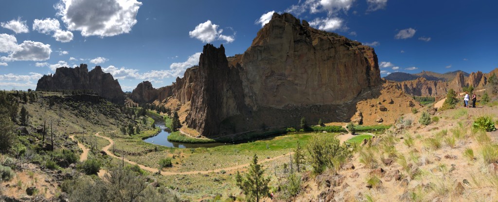Though he has lived in Oregon for decades, I was astonished to hear that he had not heard of Smith Rock. Not famous for him, I guess. This place is considered the birthplace of sport climbing, and is famous around the world for rock climbers. If you don’t climb rocks, it’s just a magnificently beautiful place. I’ll include a photo I took years ago when Kellen was there studying the area with their geology class from Oregon State University.