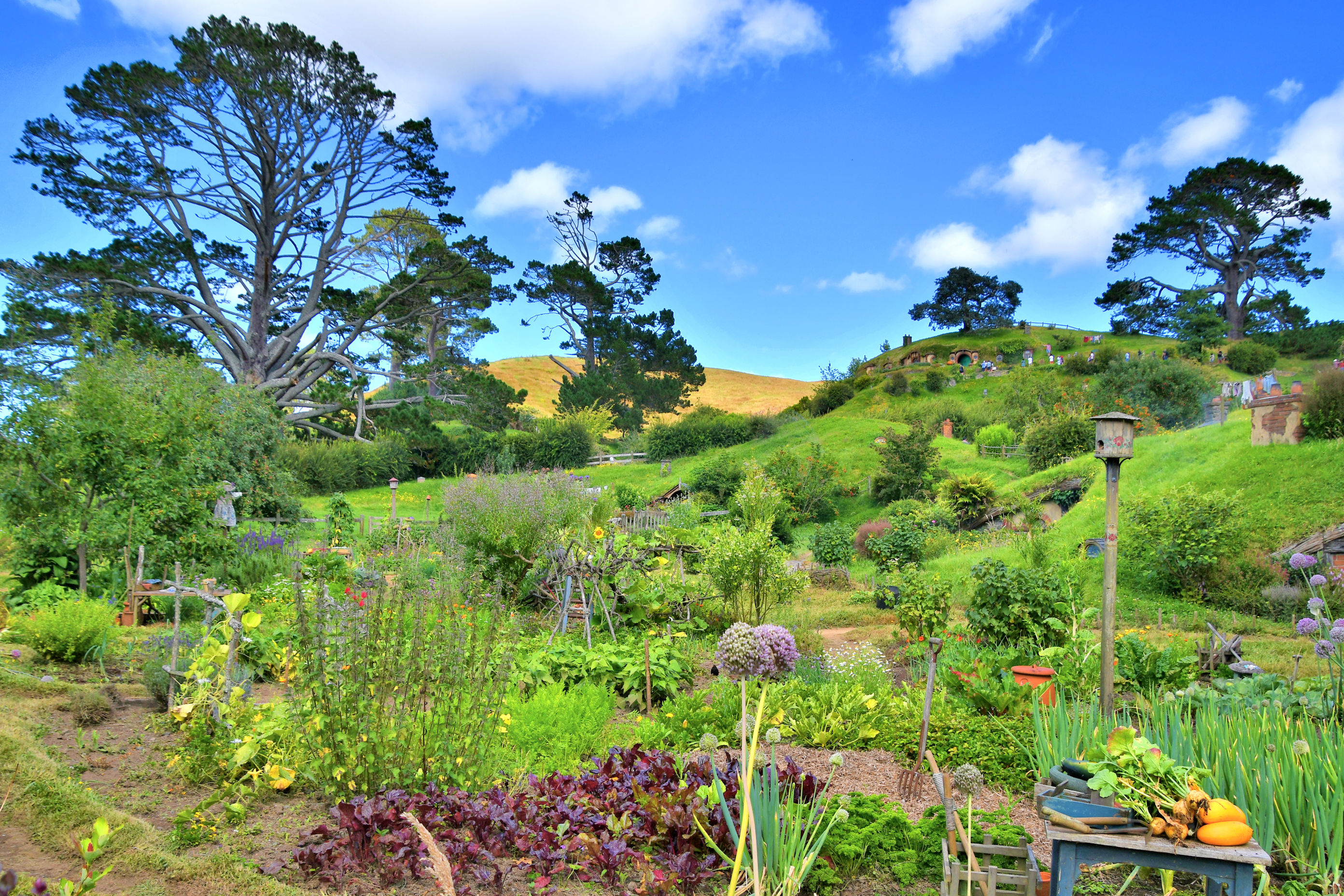 We LOVED Hobbiton, and I knew I would love it. What I didn’t know until we began the tour was that this was the first of many Lord of the Rings/Hobbit/Rings of Power sites that are actually vastly more amazing in real life. Hobbiton has been perfected to the smallest detail, unlike movie sets we just saw a few months ago at Universal Studios Hollywood. The gardens are one example. Hobbits love the land, and are excellent gardeners, and you see that reflected in every direction.