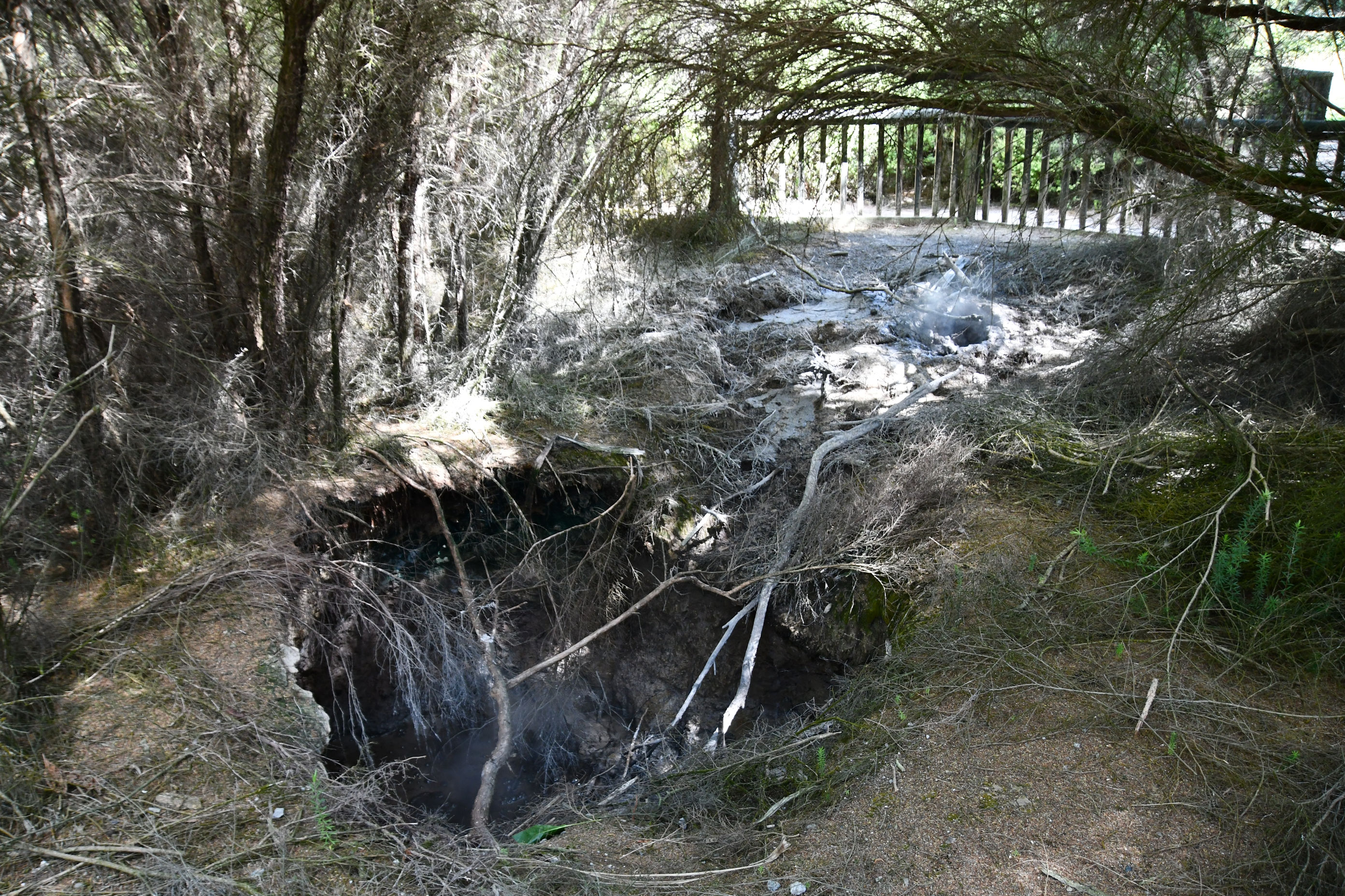 We continued to Rotorua and checked into our hotel in the afternoon. Though Pedro and I were suffering from sunburns, and it was a warm day, we had enough energy to check out a nearby geothermal park. We lathered up in sunscreen and walked in shade when we could.
