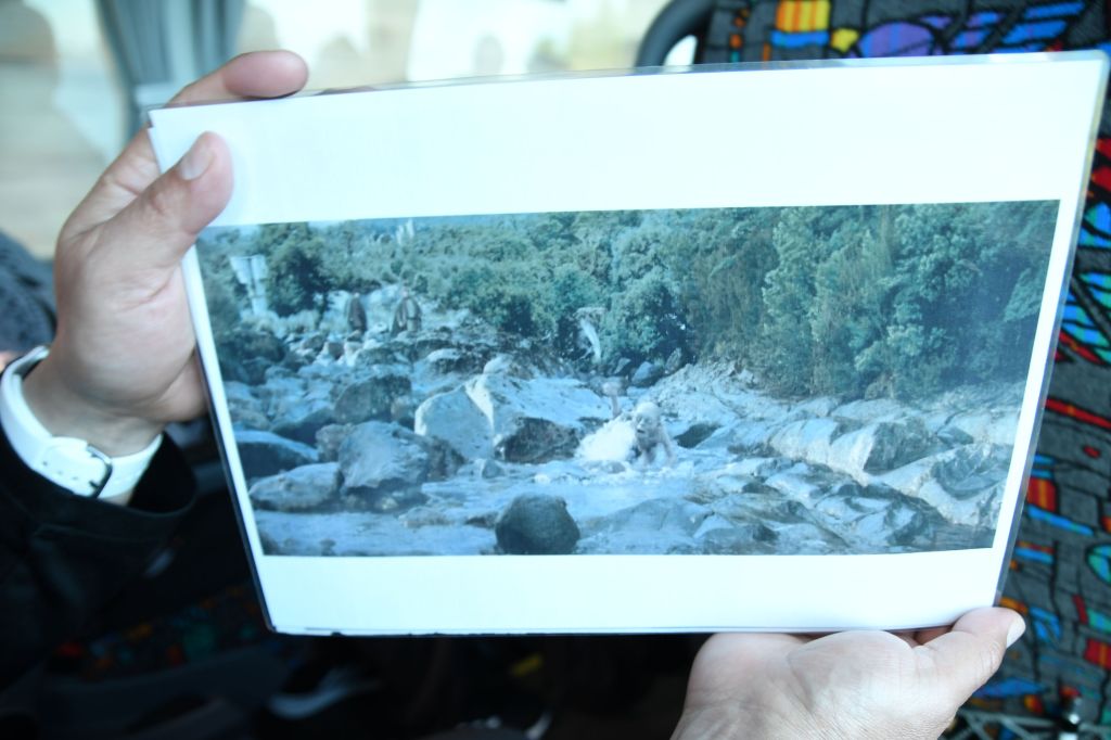 In the photo above, notice the shape of that big rock directly behind Gollum. That big rock is still there. You can also spot the hump of rocks where the Hobbits are standing, in the photo below.