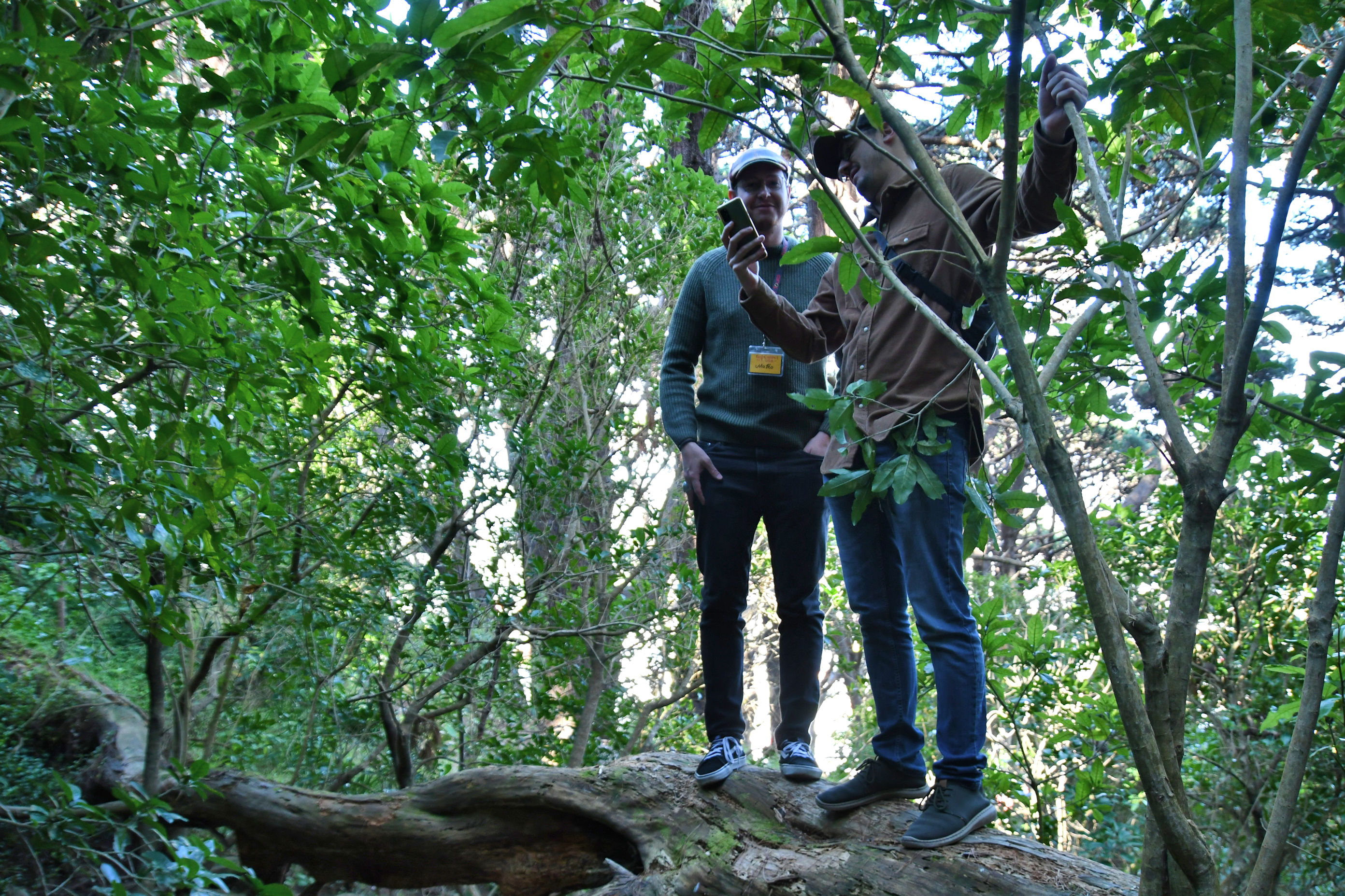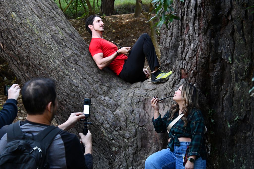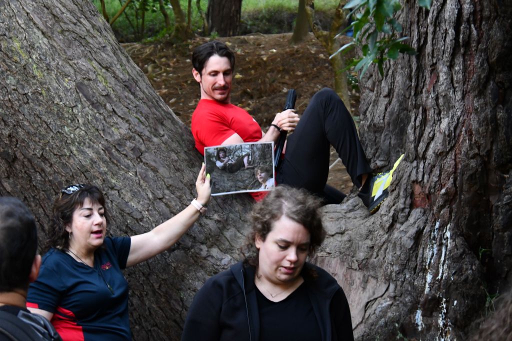 Matteo and Fabian climbing trees while we watch people reenacting the scene.