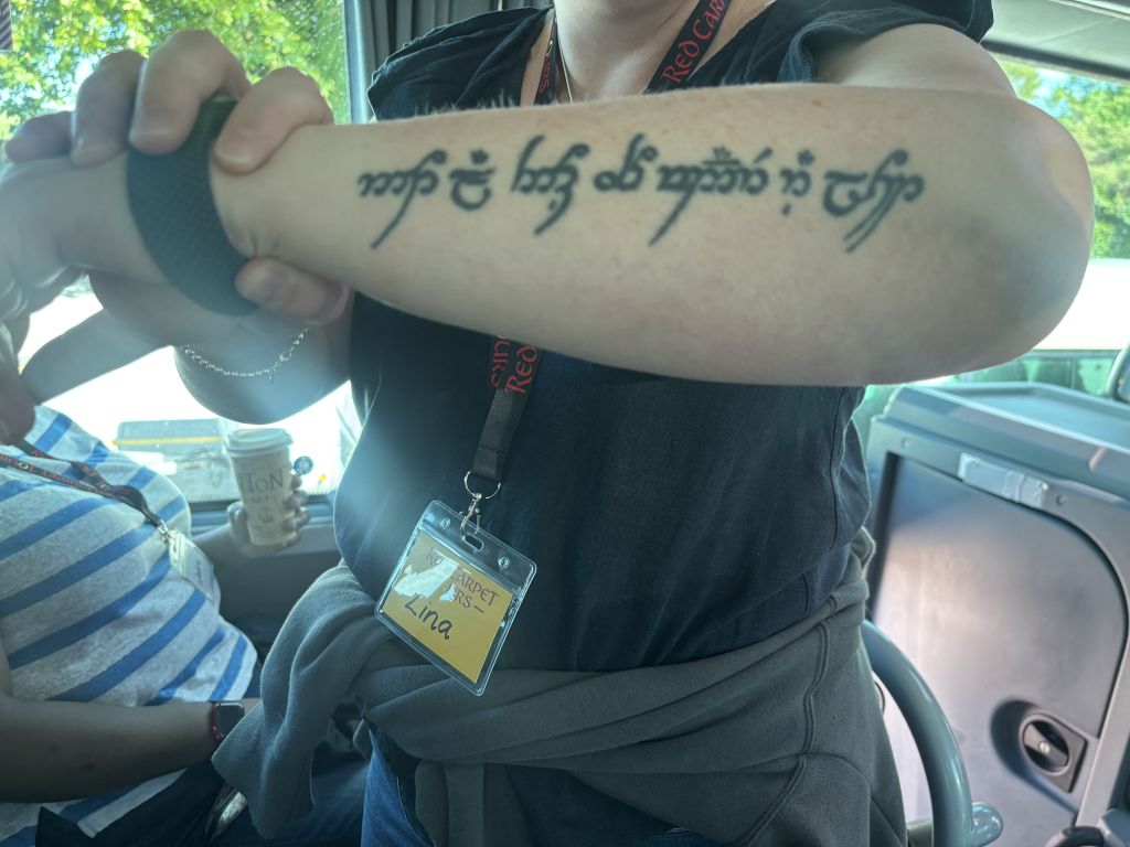 This is a tattoo on the arm of our fellow traveler, Lina. It says, “Not all who wander are lost,” in Elvish.