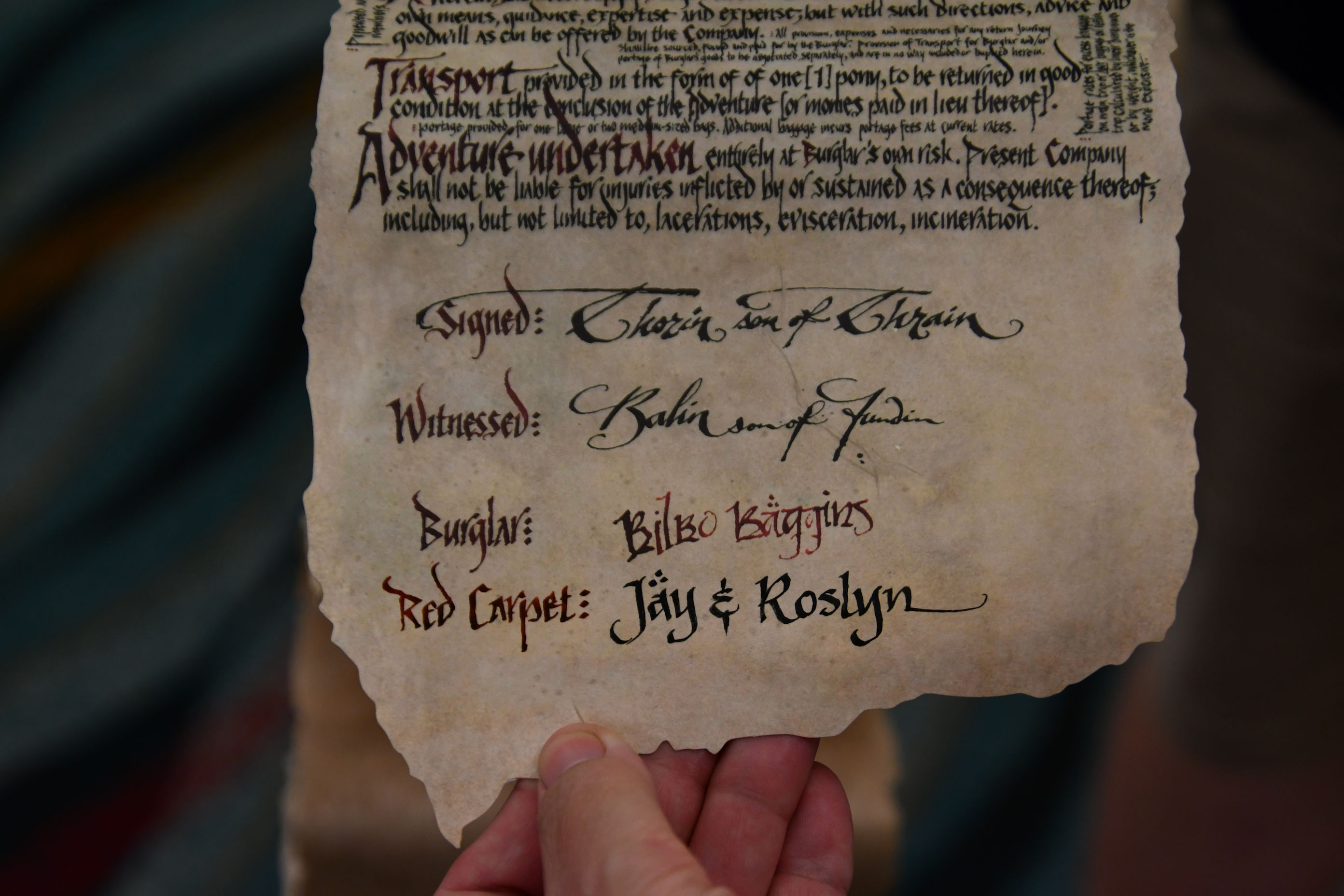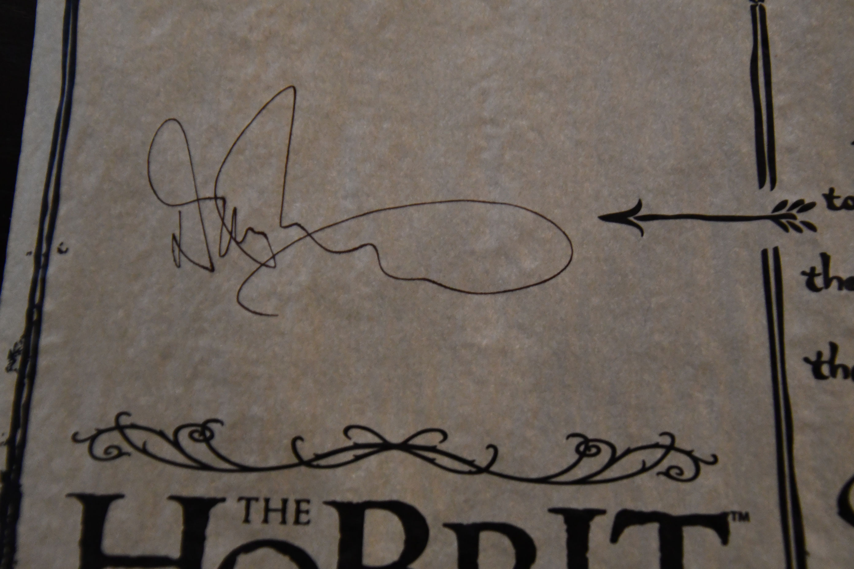 Mr. Reeve told us all the many steps he went through in the creation of this contract, that you might recall seeing in the movie The Hobbit: An Unexpected Journey. He invented this entire thing! It’s now sold by Weta, and multiple people had purchased them, and then brought them to Mr. Reeve to autograph.