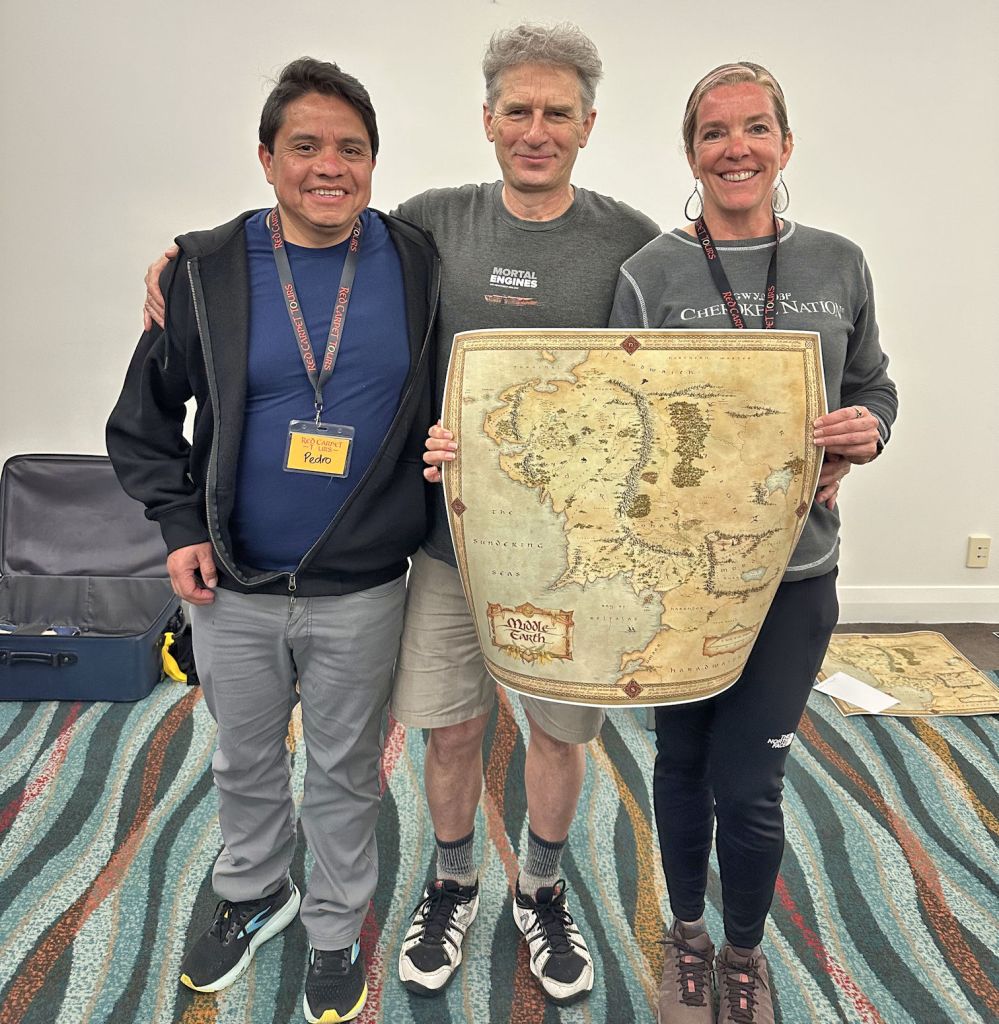 He told us about all the different languages he had to write for the Lord of the Rings and Hobbit and Rings of Power productions. How, not only did he need to learn the calligraphy of Hobbits, but he had to invent Bilbo’s penmanship, and Frodo’s penmanship. He told us that, while actors did study, practice, and eventually learn their proper Hobbit penmanship…that for a close-up shot of Bilbo writing in the red book, it was actually Mr. Reeve’s fingers in the film.