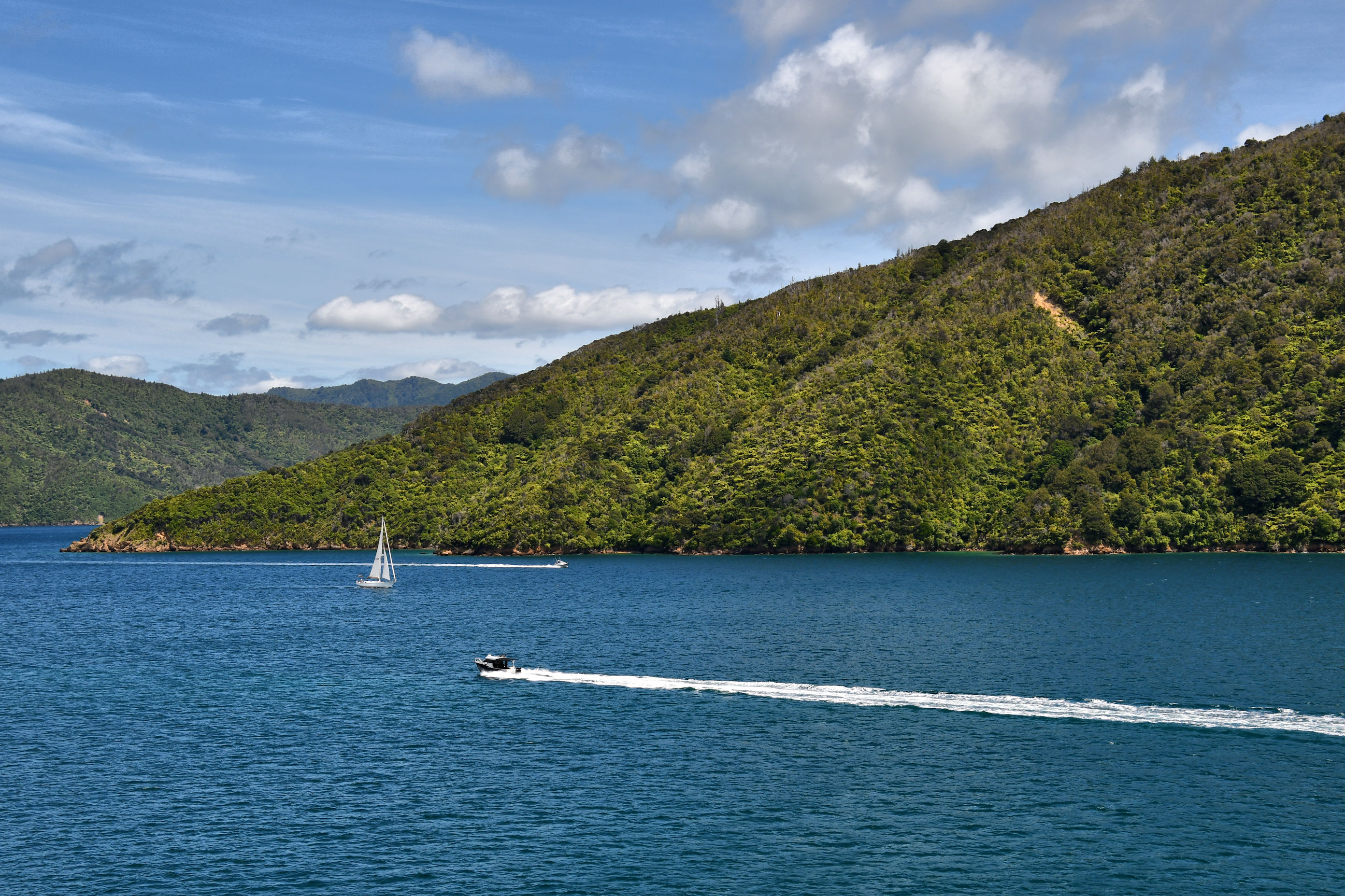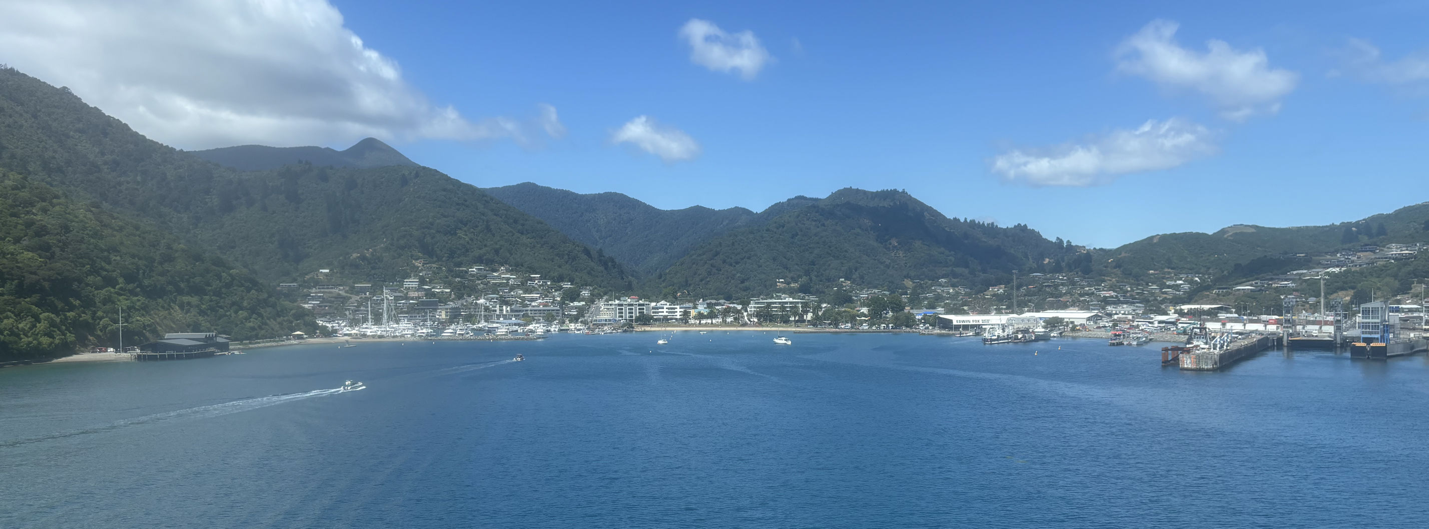 Our three days in Wellington ended up being the worst weather of the trip. It was cold, it rained, and was cloudy. Wellington was the only city where we pulled on our down jackets. In the middle of summer! But finally, as the ferry left the channel between the two islands, then began winding its way through the smaller islands to reach the South Island, the weather improved considerably. No longer cool, showery, and often cloudy, our weather for the rest of the trip was much warmer.