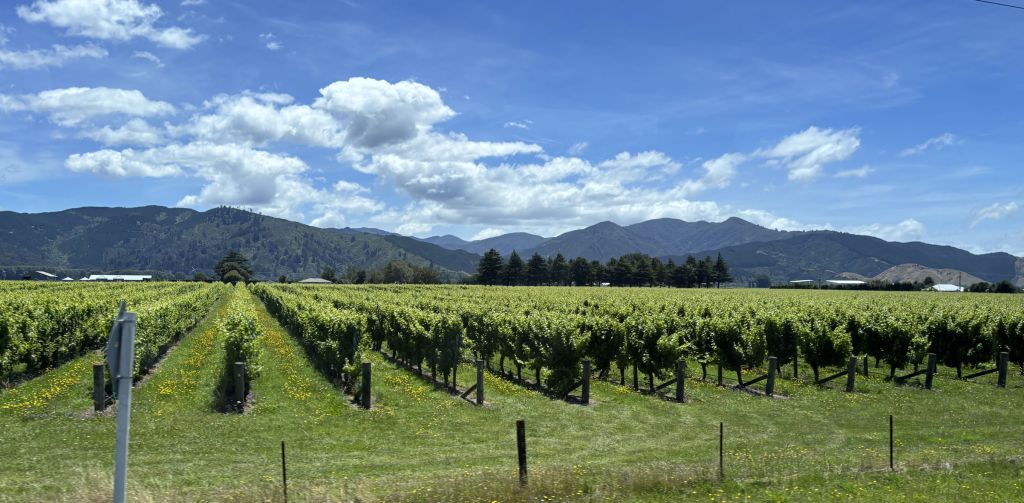 On land once more, we met our new bus driver, Scotty, and the new bus, that we called Brego, after Aragorn’s horse. We spotted large vineyards right away, and noticed from the yellowing grasses that it had been warmer and drier here compared to where we had been.