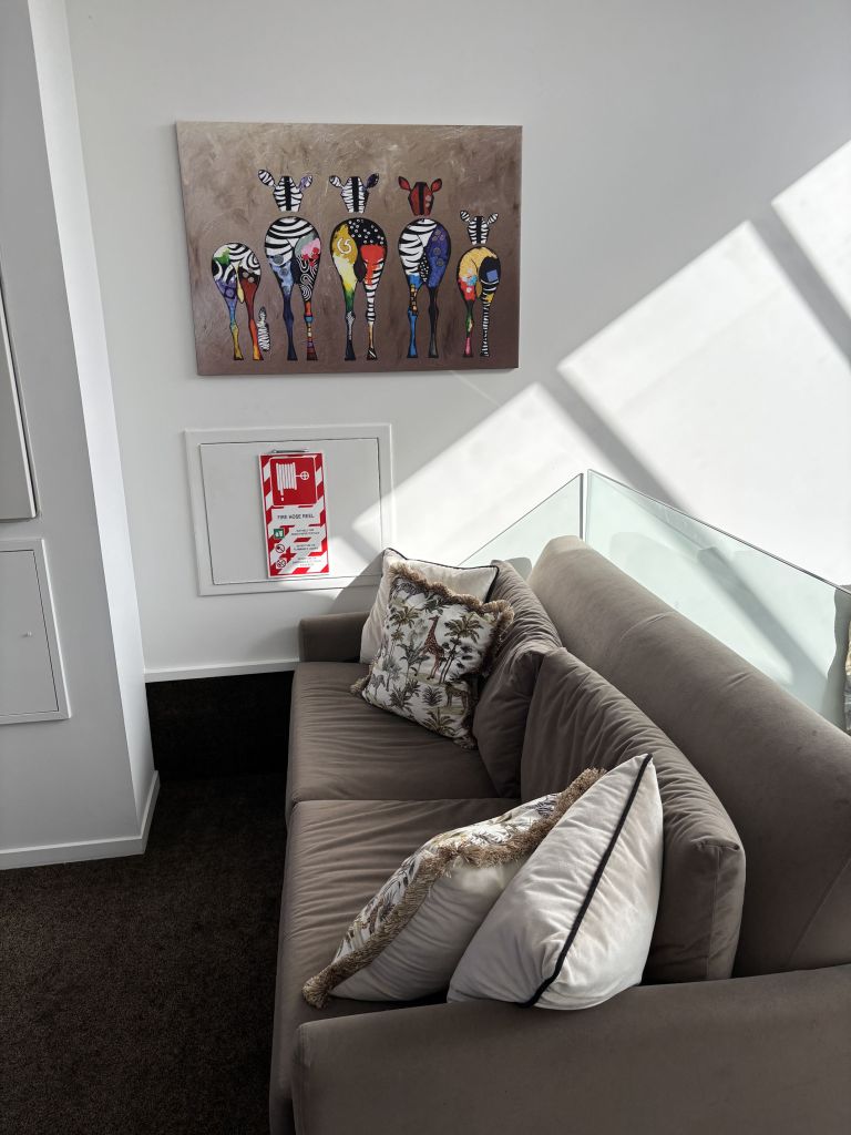 It was a short trip from there to the Tides hotel in Nelson. It was a very pretty place with art everywhere and soon became our second-favourite hotel of the whole trip.