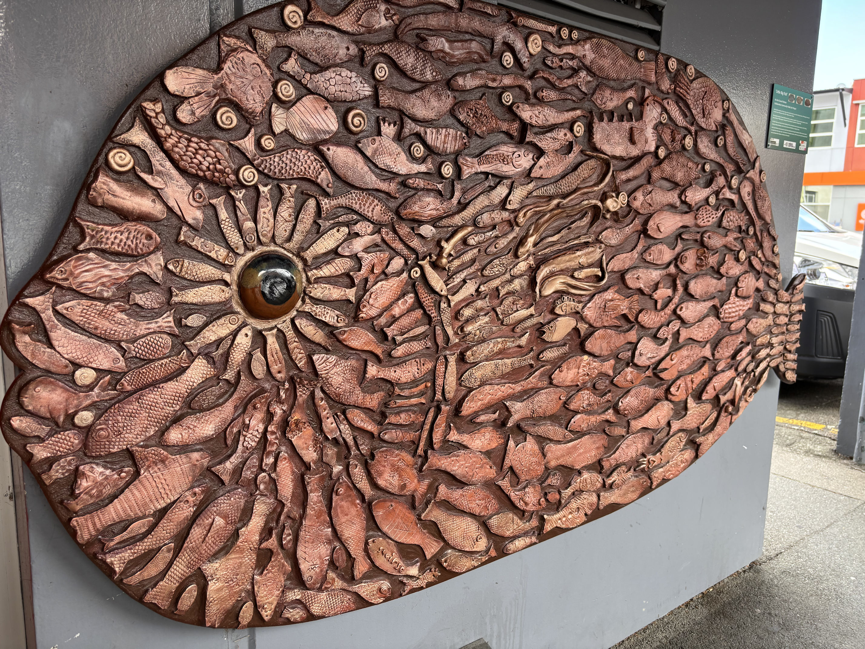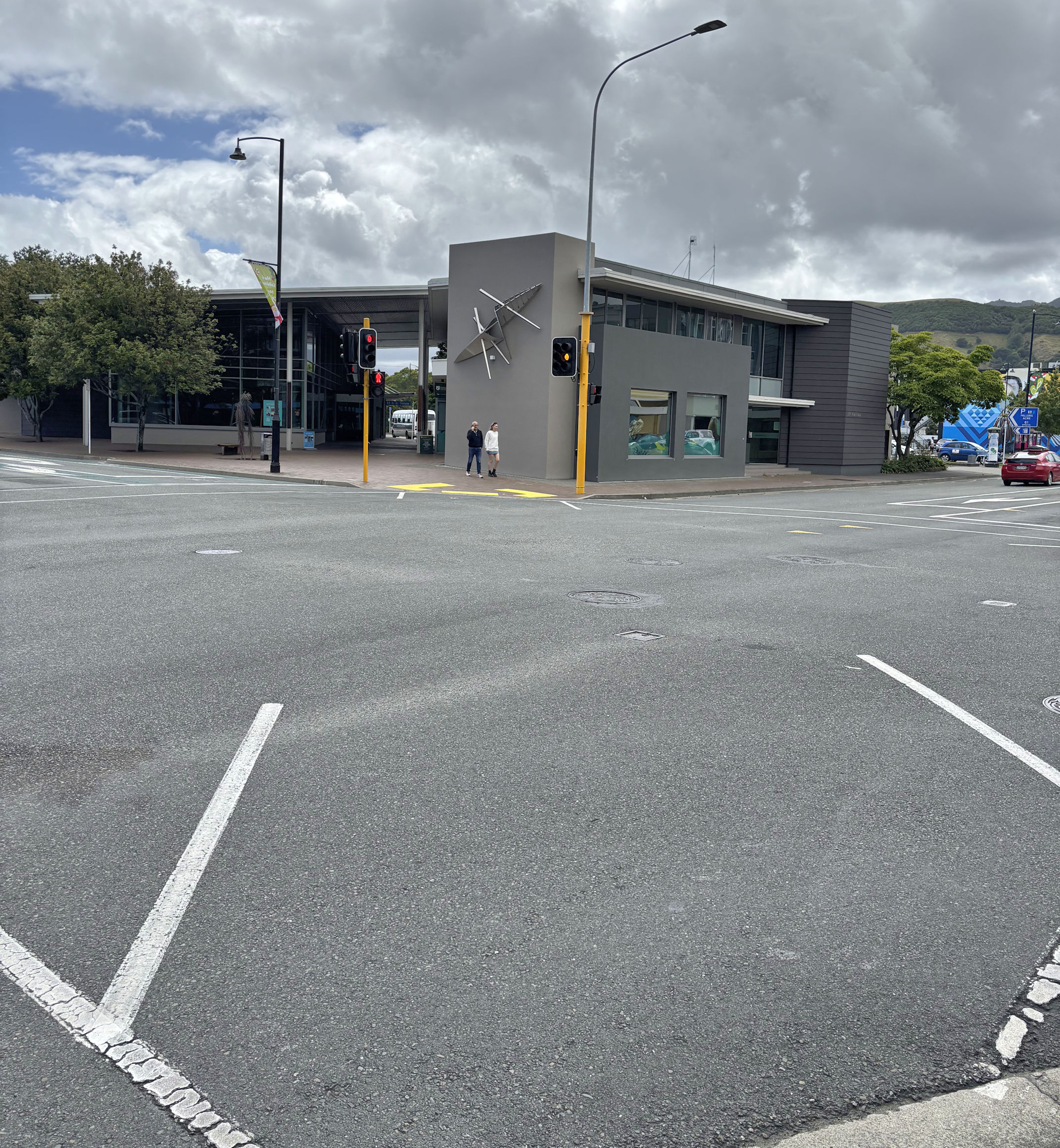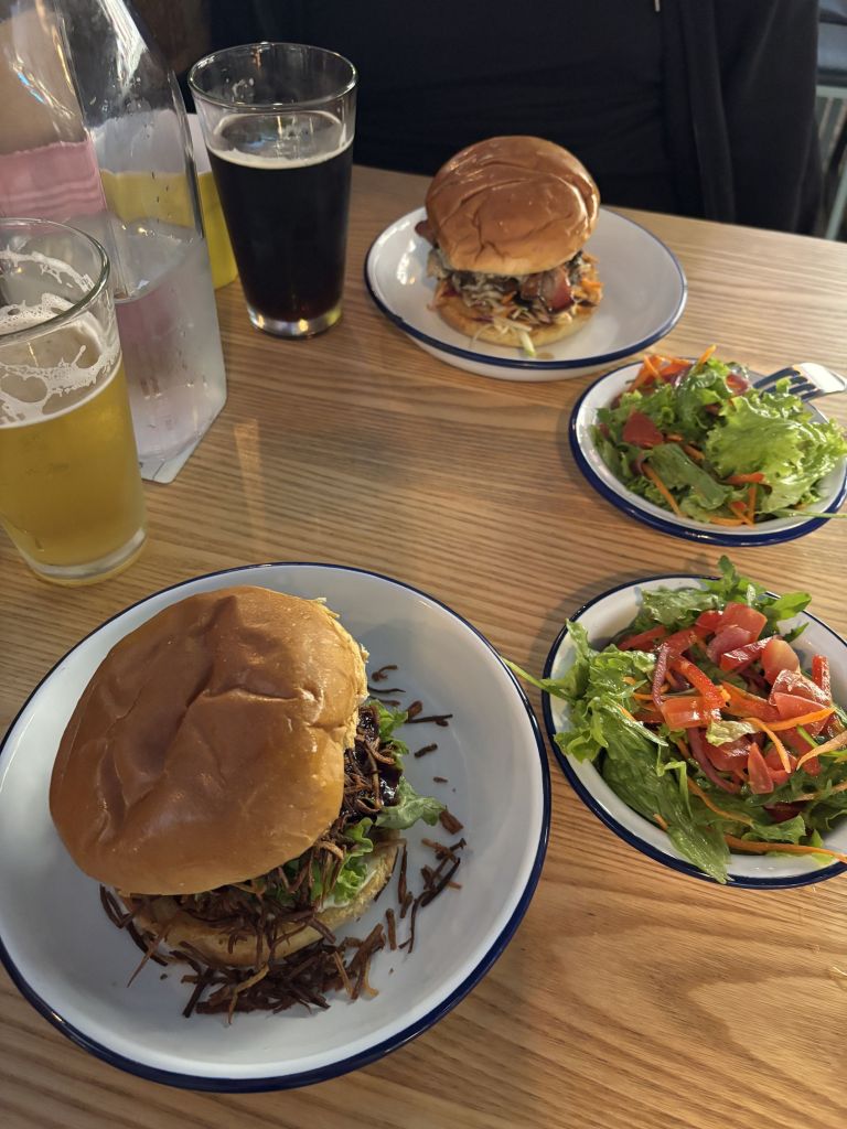 The antihistemine I took earlier in the day had a noticeable impact and I was eager to get more, so Pedro and I set out into town to find a pharmacy. We were also hungry, and had been tempted by Josh’s raving about a particular burger place. We walked a short distance into town from the hotel, admiring more art along the way, and the pretty little town of Nelson.