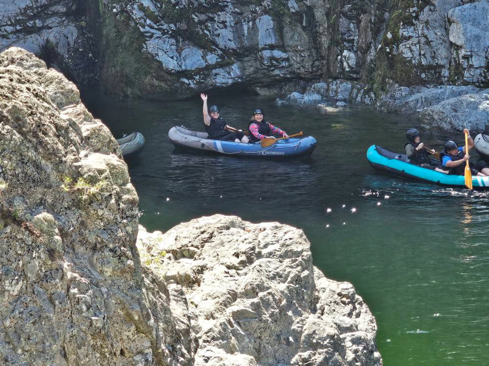 Our next stop was kayaking on the Pelorus River, and I was relieved that the weather had improved drastically from the cold rain of the morning. By the time we stopped it was sunny and hot and we were eager to get off the stuffy bus.