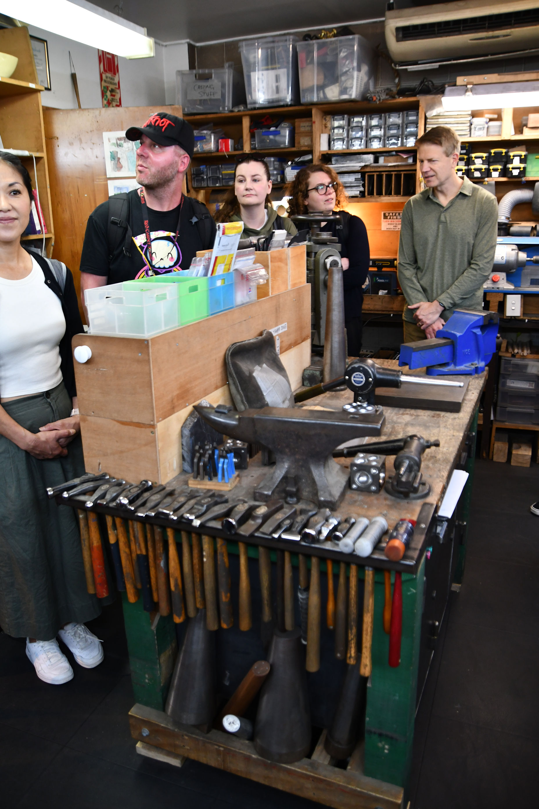 I had turned off the auto focus on my camera so the following images are blurry. But I loved the workshop so much that I am going to include the images anyway. They give you a sense of how wonderful the workbenches in there are.