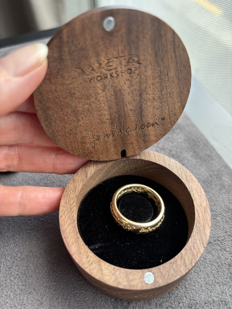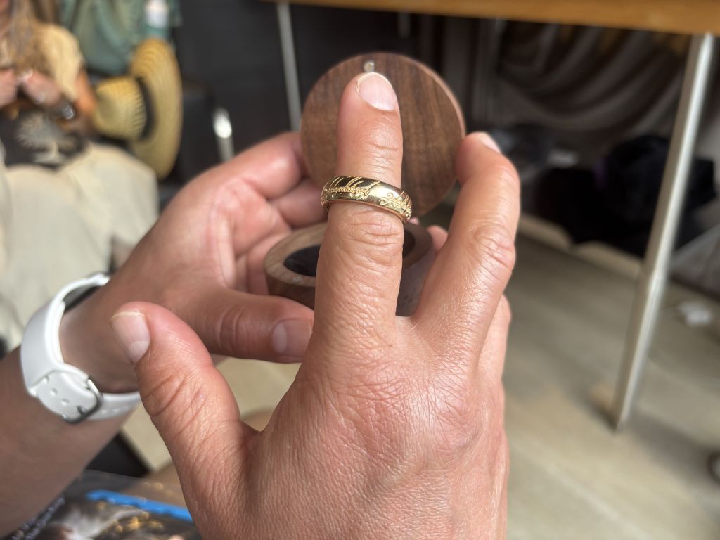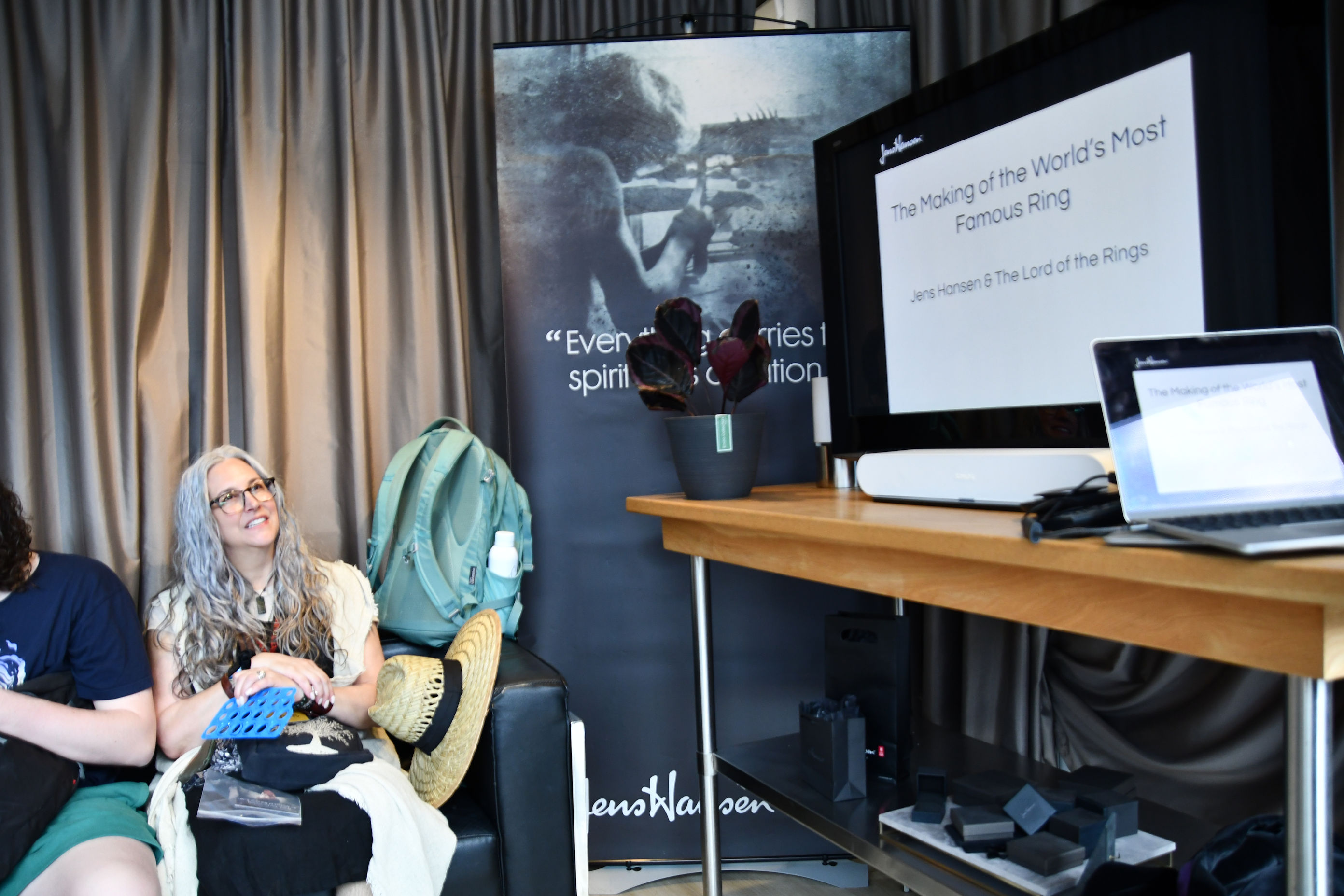 Hansen explained some of the history behind his father and brother’s making of the rings. Their website says, “Jens and his son, goldsmith Thorkild Hansen, made more than 40 variations for the films. These were scaled for different scenes and sized to suit its various owners -from smaller solid gold versions that perfectly fit Hobbit’s fingers, to the 8 inch ring seen in the prologue spinning and turning through the air.”