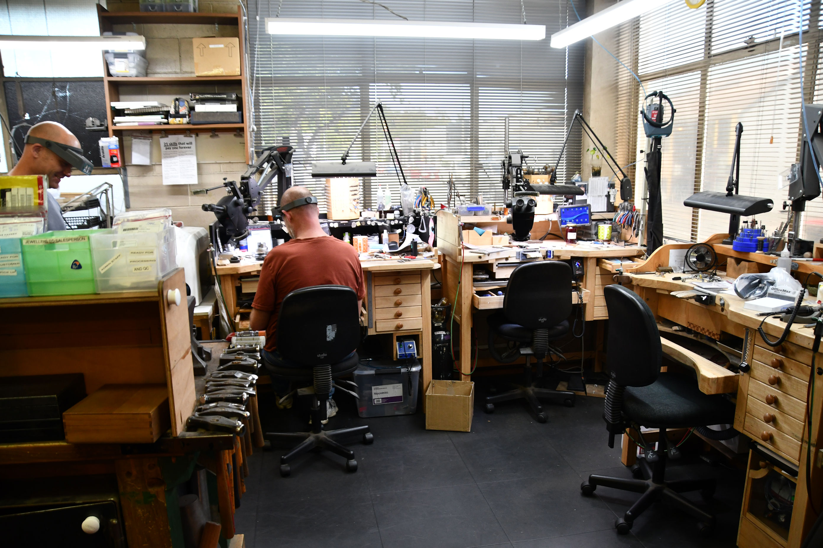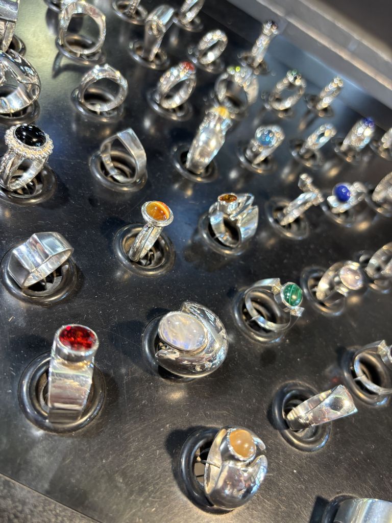 Halfdan Hansen is an excellent spokesperson for the jewelery company. He first brought us into the small room where the ringmakers do their work. (The artisans knew we were coming and had all vacated, presumably to collect some flat whites at a distant location)