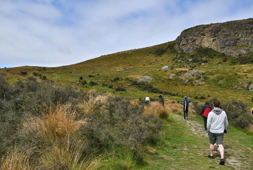 Morning was grey, cloudy, and raining steadily. As we drove toward the location, it rained and rained, the windshield wipers on the bus swiped in vain. I had to fight my growing dismay. My one and only day in probably my whole life to go to Edoras, and it was so stormy we could barely see the landscape. Tour guide Josh tried to make us feel better by repeatedly announcing that the weather is often better at Mt. Sunday than whatever it was in Christchurch in the morning.