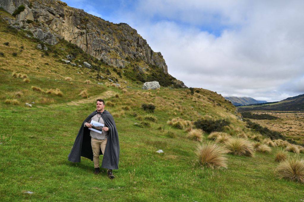 In the scene above, Josh pointed out where Helm’s Deep was shown in the movies. It’s at the base of the mountains to the left. Look for a small stand of tall trees, and Helm’s Deep is just to the right of it.