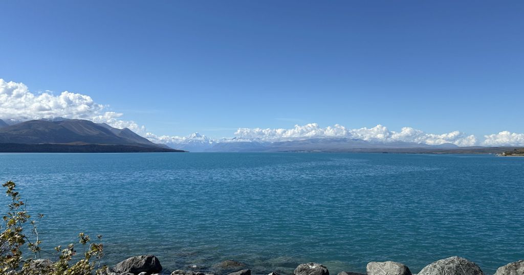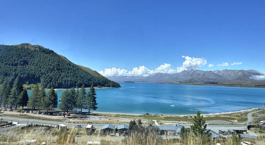 Lake Pukaki is larger than Lake Tekapo, and it caught everyone’s attention. Then we spotted the mountain.