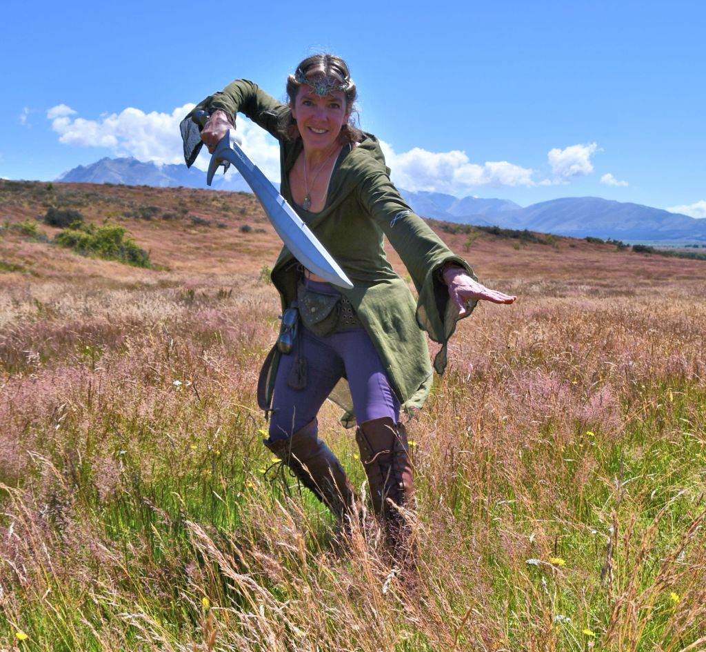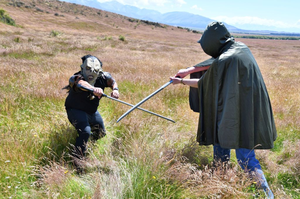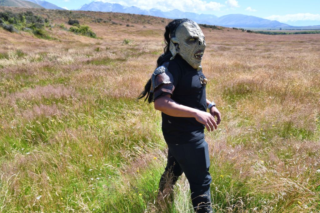Priscilla is the owner of this farm, and was like the other wonderful people we had met, in being thrilled that her place was chosen to be in the movies. Peter Jackson had searched the country for horsemen for the Pelennor Fields scene, hiring at least 150 extras on horses. Interestingly, they got as many women volunteers as they got men, and the costume department just put beards on them and hid their female bodies under masculine armor. For the other side of the battle, orcs were needed. Estimates are that 300 to 500 orcs were needed at a time, for various scenes that were filmed. Only a few of these were movie actors. The rest were extras and many of them came from Twizel. Priscilla was one of them.