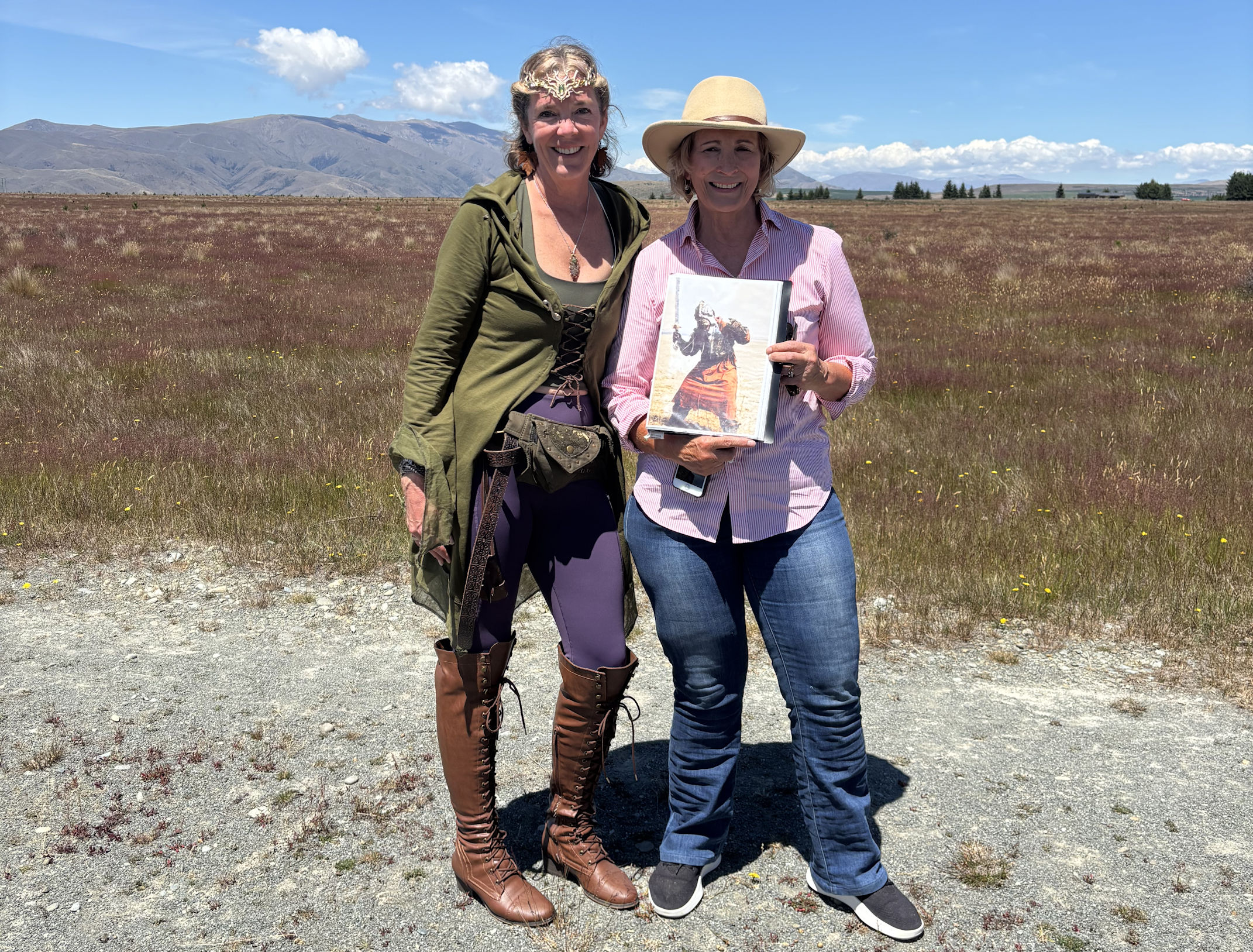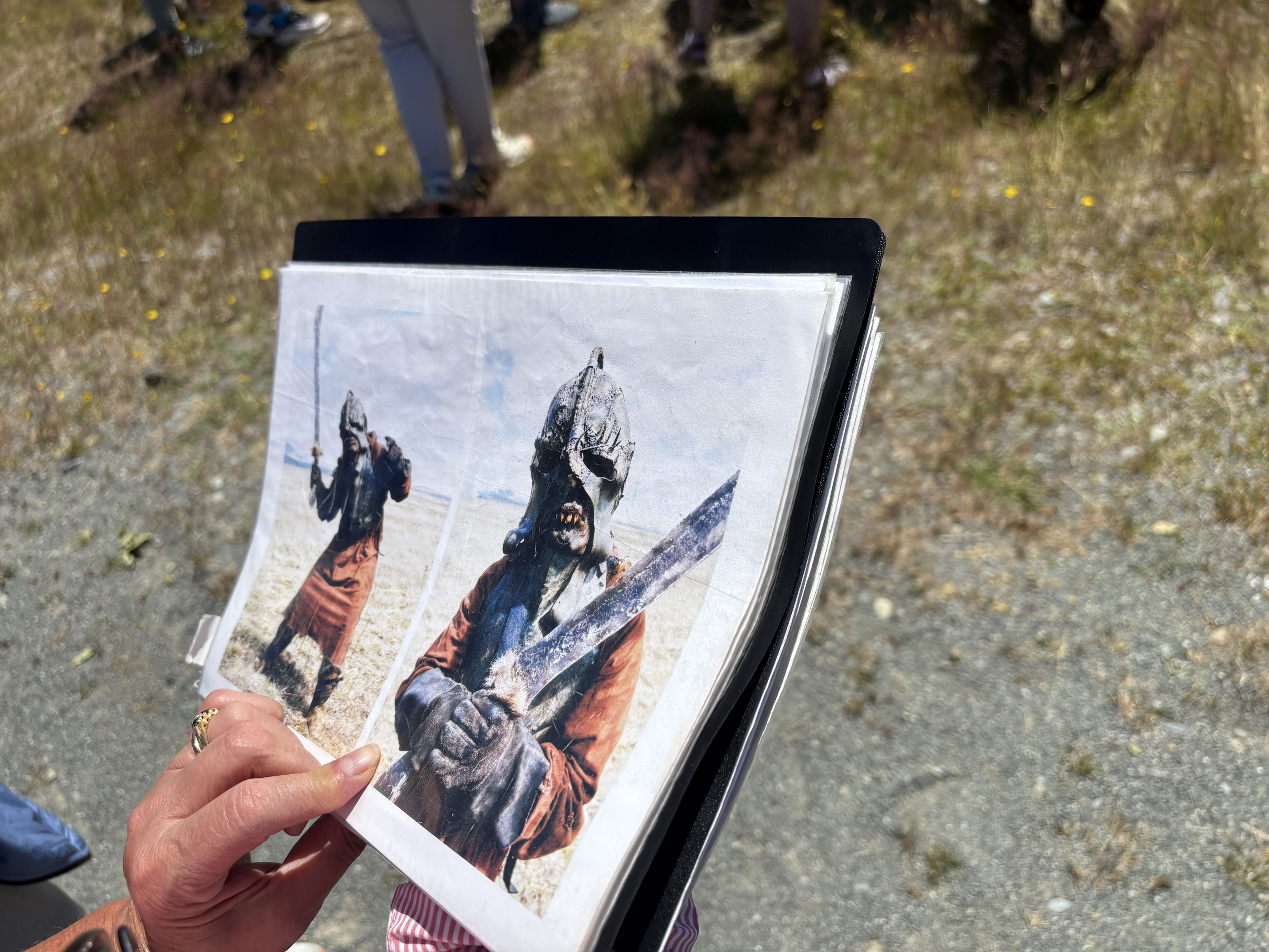 Priscilla is the owner of this farm, and was like the other wonderful people we had met, in being thrilled that her place was chosen to be in the movies. Peter Jackson had searched the country for horsemen for the Pelennor Fields scene, hiring at least 150 extras on horses. Interestingly, they got as many women volunteers as they got men, and the costume department just put beards on them and hid their female bodies under masculine armor. For the other side of the battle, orcs were needed. Estimates are that 300 to 500 orcs were needed at a time, for various scenes that were filmed. Only a few of these were movie actors. The rest were extras and many of them came from Twizel. Priscilla was one of them.