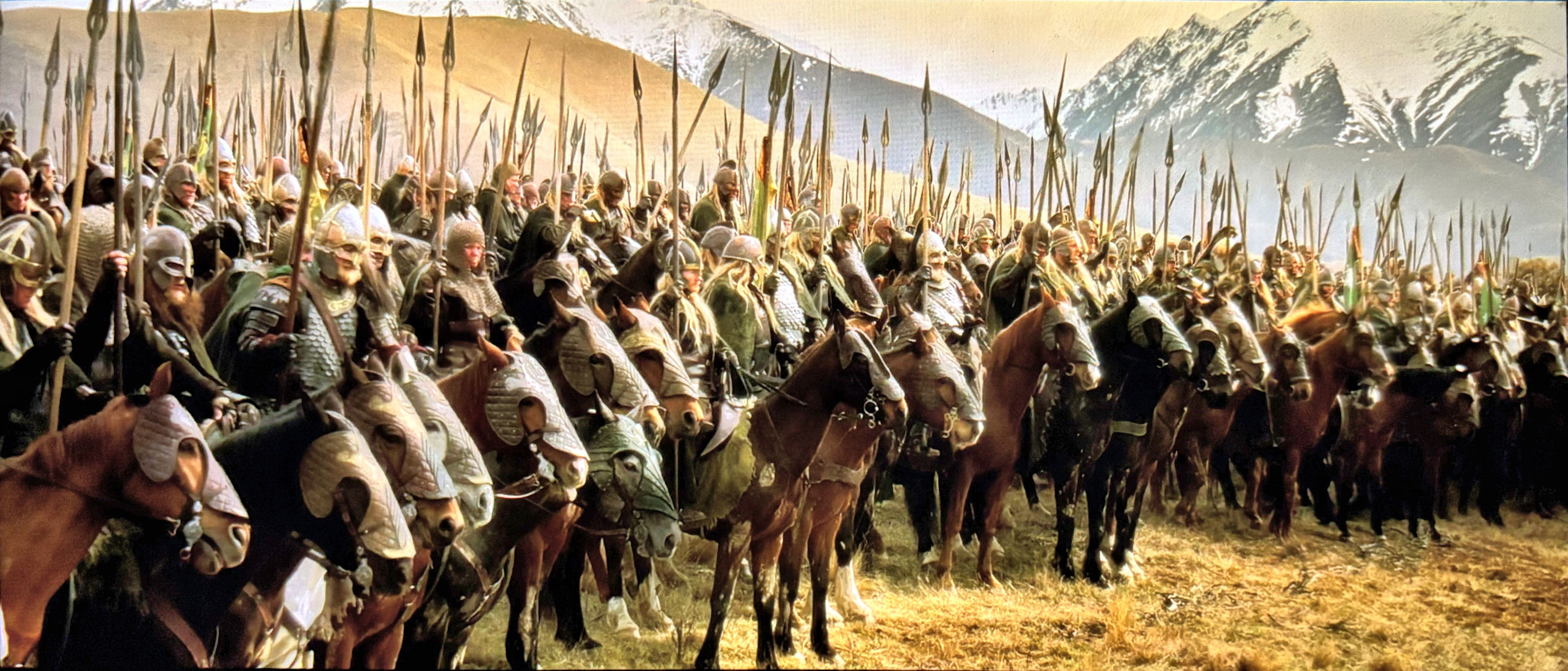 King Theodin’s Rohirrim as they prepare to charge on the orc army. (Notice those spears)