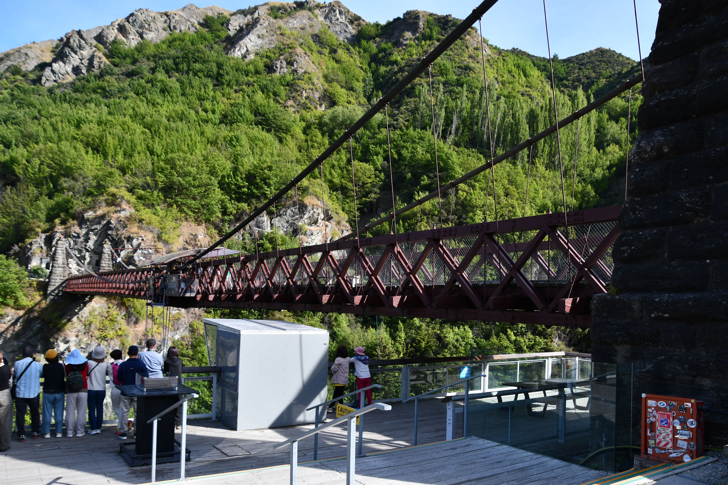 We woke in Cromwell with the intent to make it to Queenstown and check into our last hotel. The drive is only 1 1/2 hours, so it could have been a short day, but we stopped at Kawarau Bridge on the way. This is the location of the world’s first commercialized bungy jumping, run by the AJ Hackett company. It opened in 1988 and operates from a bridge over the Kawarau River.