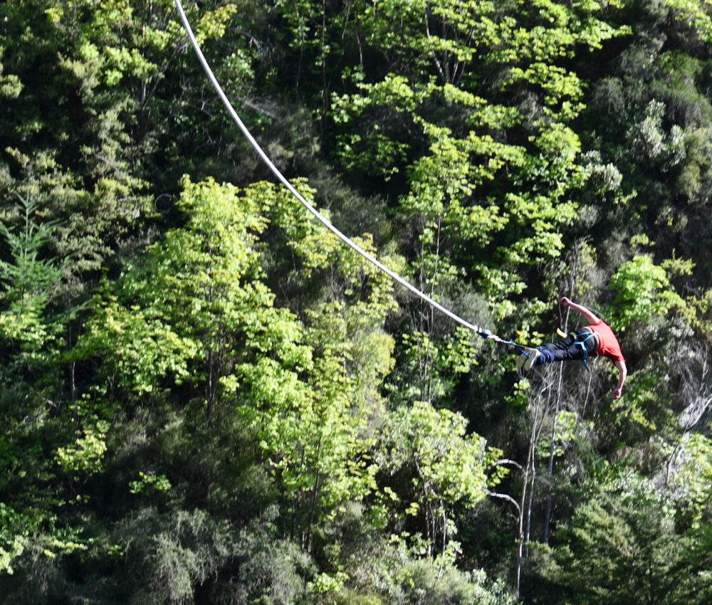 In minutes, we had purchased another bungy jump! Pedro had been looking forward to the water dunk for a month, and was truly disappointed that it had not happened that morning. When we told the story inside, and said we wanted to go back and try again, the people behind the counter told us three important things: first, how to dive to make sure you submerge, and second that another jump on the same day would be less than half the price of the first one, and third, that jump would include a ride back out to the bridge and a return.