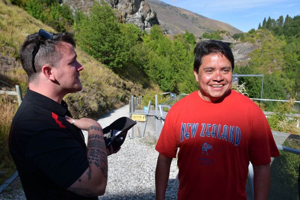 We did go back to the jewelry store because Pedro wanted to purchase some New Zealand greenstone. He found a pendant that he liked for a good price and then we left to go find some food. After eating, we wandered Queenstown and stumbled across – I kid you not – the AJ Hackett office. We walked in to make some inquiries.