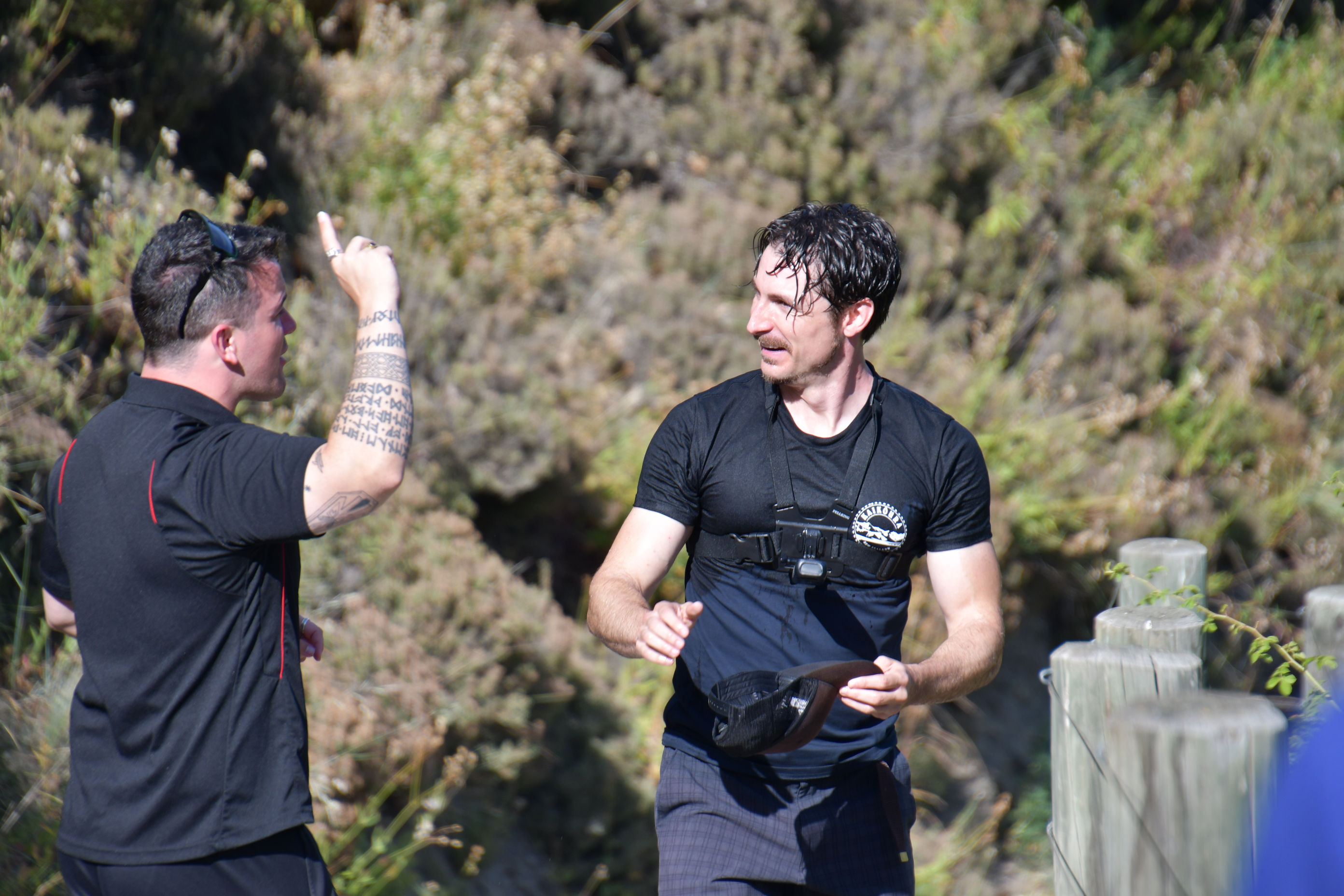 Josh congratulates Pedro. You can still see evidence of his sunburn from ten days earlier in Auckland.