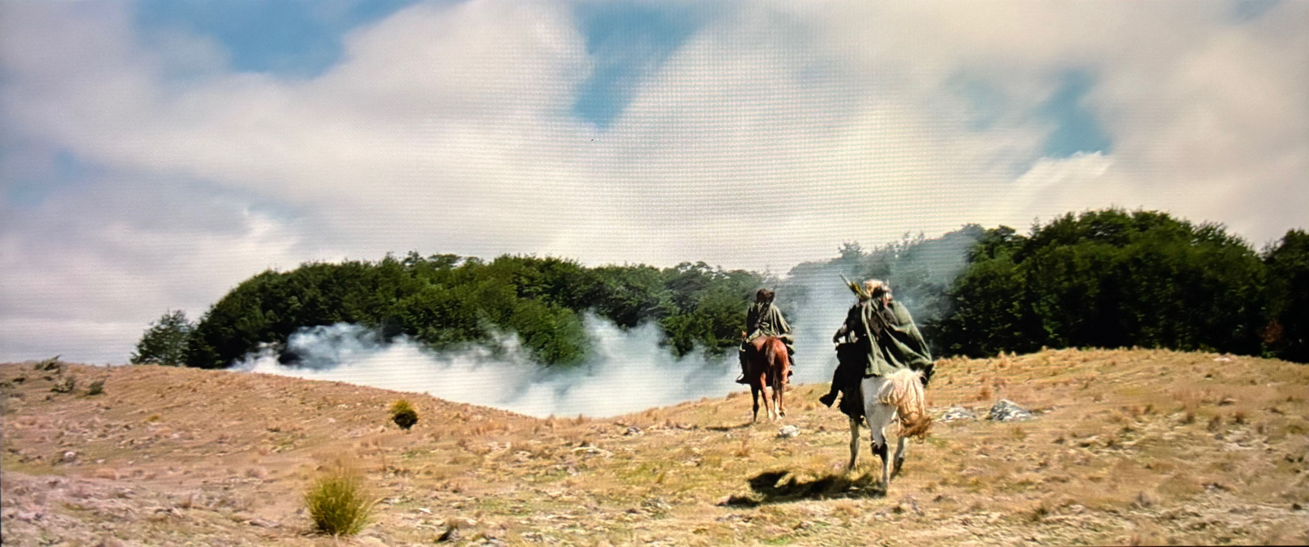 We were headed for Fangorn Forest and the Orc funeral pyre, from the scene when Aragorn, Legolas, and Gimli came upon the work of Eomer and the exiled horsemen of Rohan. First we faced northwest at the spot where the urukhai head was impaled on a stake as a warning.