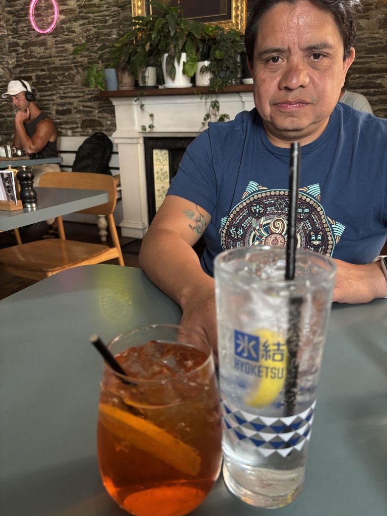 We found some yummy food at Yonder, which was right next to a place called the World Bar, that I know a lot of the young people on our tour went to in the evening. World Bar had ramps in front for skaters and skateboarders, with music blasting. It seemed quite exciting. We were excited about the delicious food and real coffee beans next door at Yonder. We bought coffee so that we could drink something other than instant in our room at our last hotel.