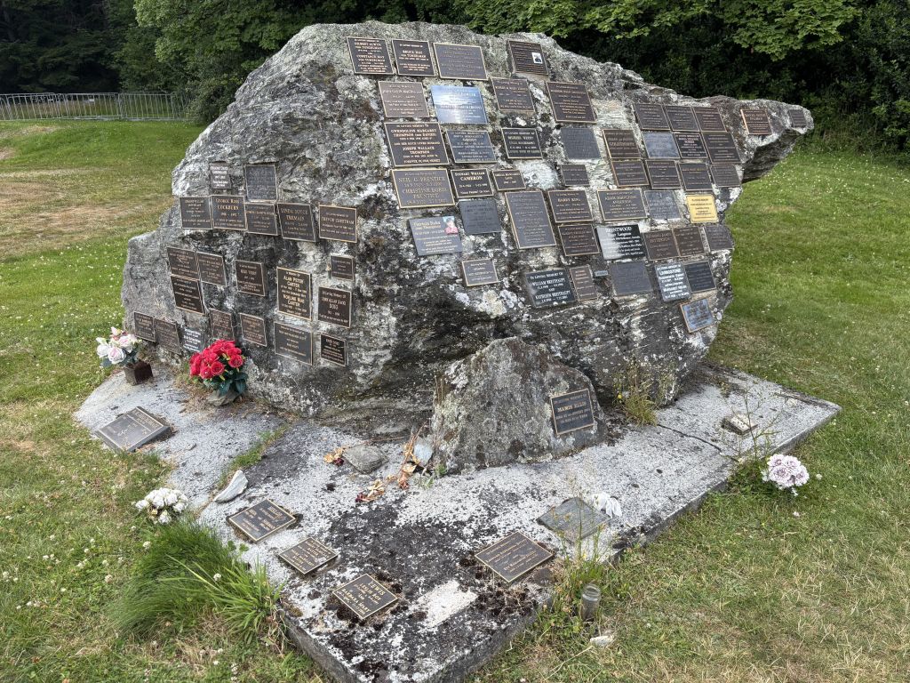 We were fascinated by this rock, covered in memorial plaques for the dead.