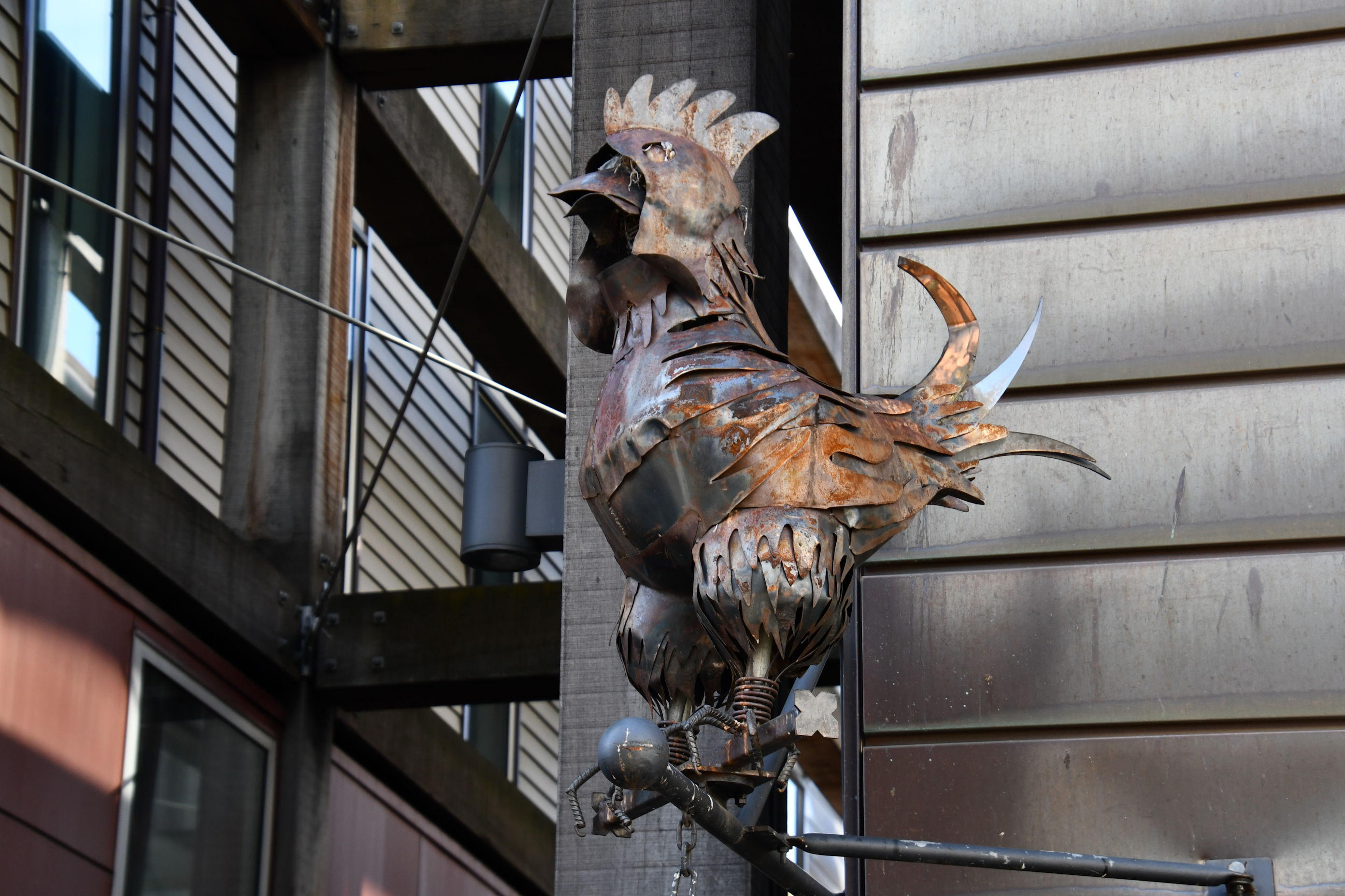 We stopped to photograph this chicken sculpture. Behind you see the Skyline Queenstown.
