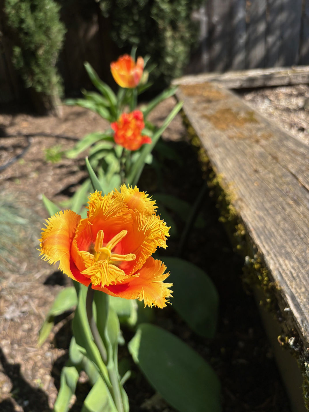 Last week we were engulfed in the warmth of a fake summertime, and everyone went outside and wore shorts and smiled for days in a row. My flowers burst forth and opened up and things below ground remembered life again. I bought some flowers and built up some pots for the deck, just to add some colour against the house. It was lovely. The pleasant weather is now gone again, but I remember.