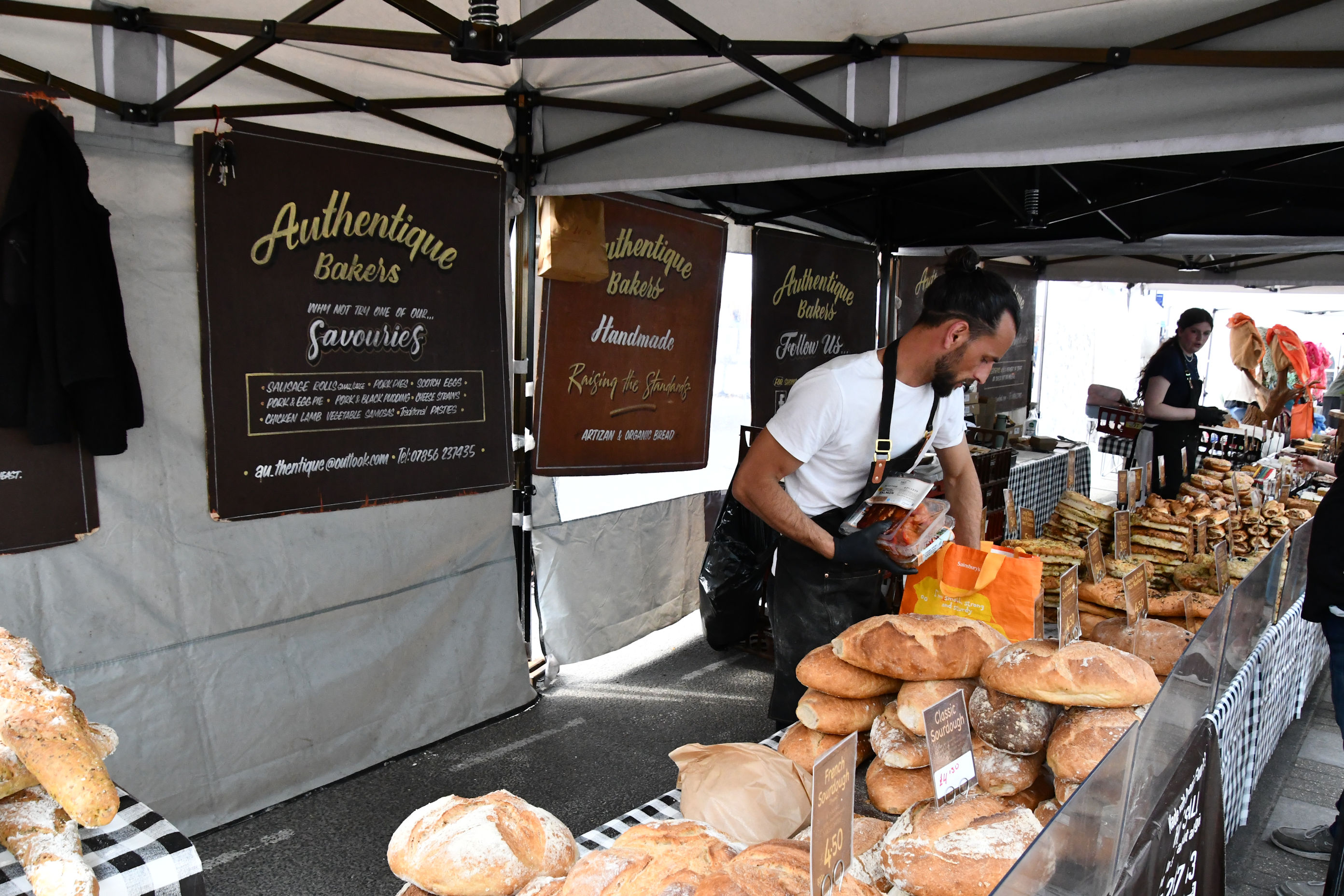 Having learned about the Lymington market from Derrick’s blog, I was eager to see it Saturday morning. Margaret and I found a place to park that was very close, and walked up High Street perusing stalls. The market is here every Saturday with stalls selling plants, baked goods, produce, household goods, clothing, gin, spices, books…you get the idea. Depending on the source, there are from 60 to 90 stalls selling goods (perhaps the number depends on the season).