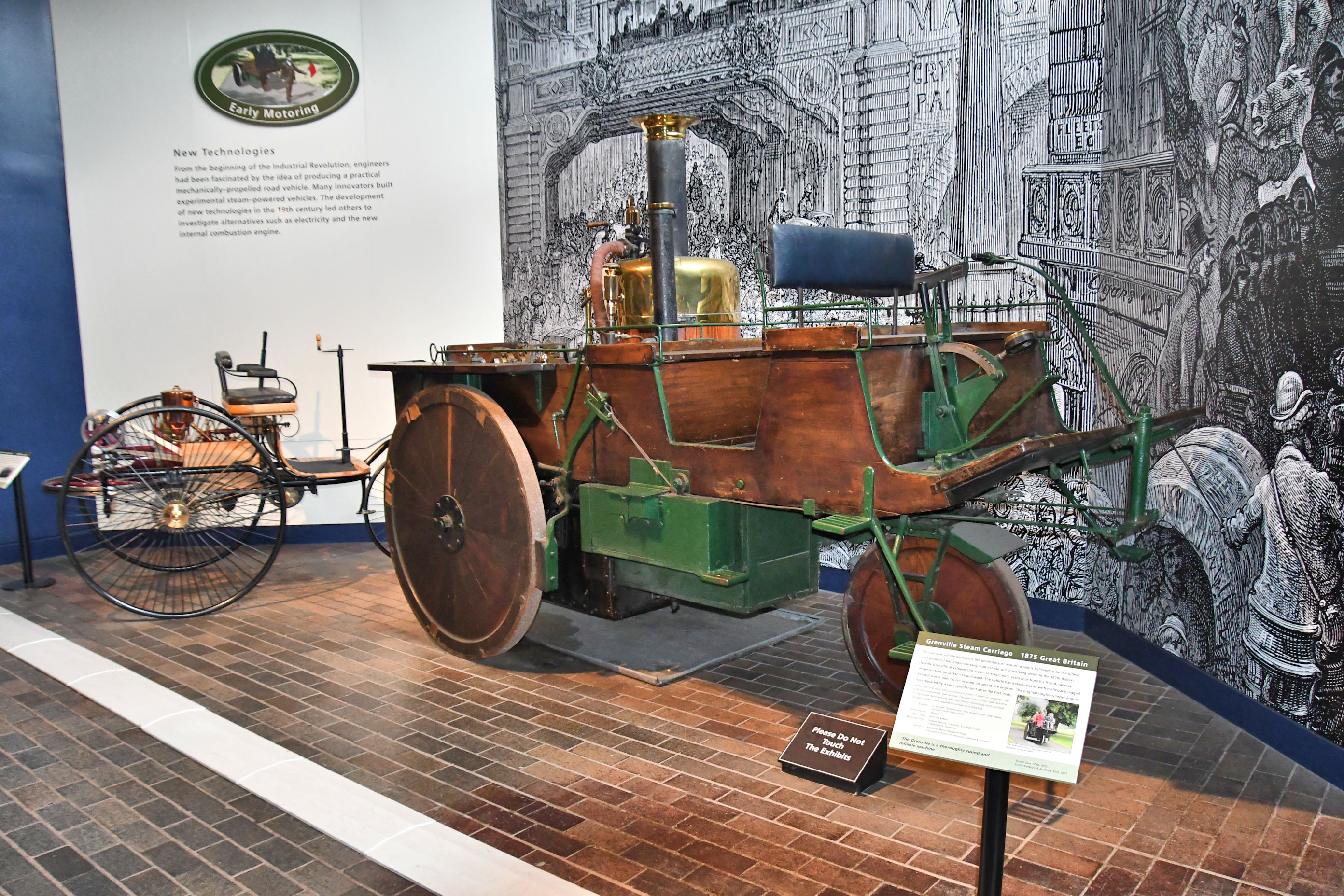 I appreciated the large collection of very old cars, like the Grenville Steam Carriage. The information sign says it is the oldest self-propelled passenger vehicle still in working order. This 2-cylinder vehicle can go 18 miles an hour.