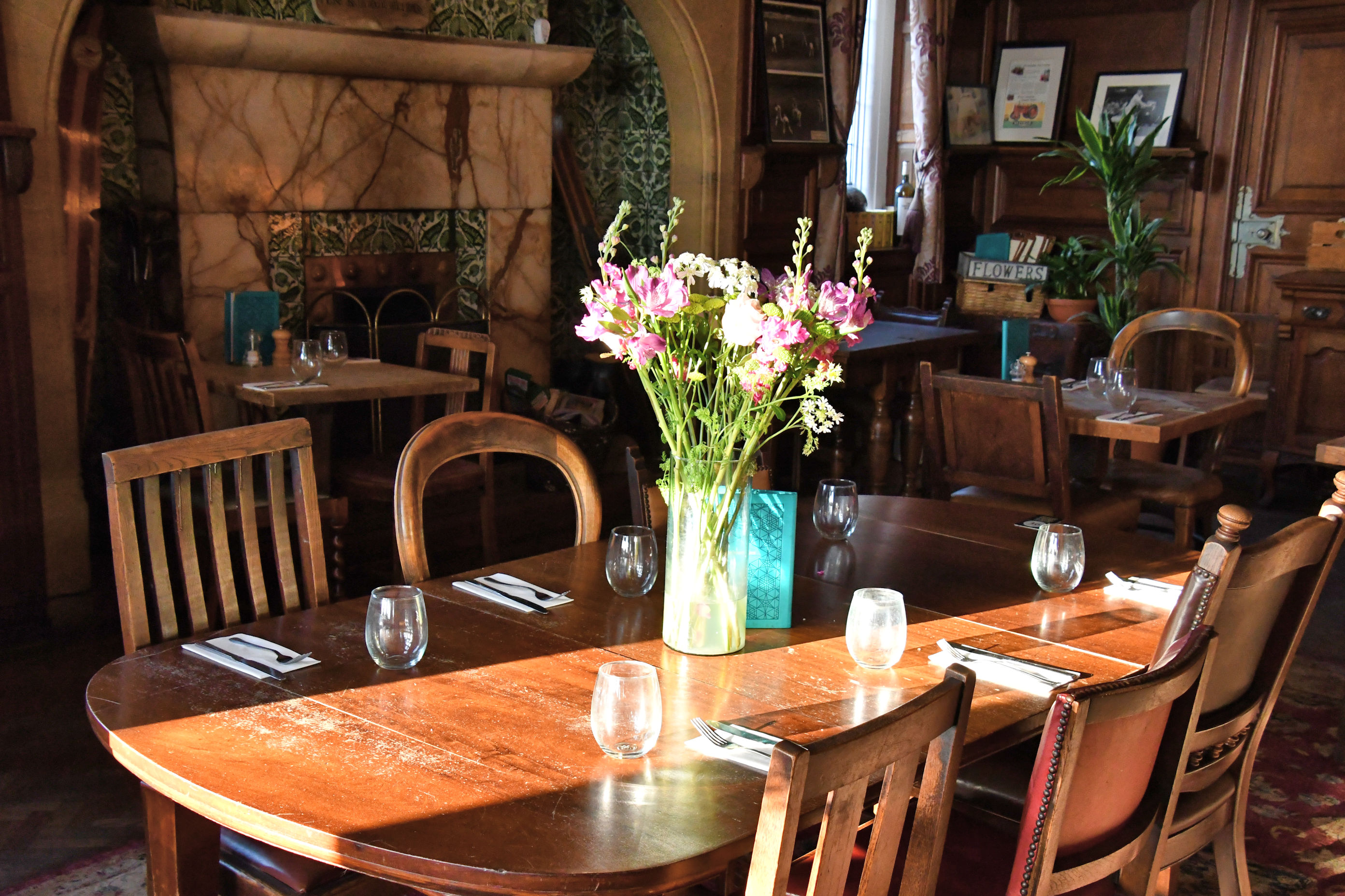 We were shown our table and I wandered off to take photos. This historic home was built by an internationally renowned Victorian architect name Arnold Mitchell. Mitchell was apparently involved in the concept of the Aswan Dam, which I have seen in Egypt, and railway stations in Argentina. The impressive stained glass windows were installed because the original home owner did not like curtains, which in 1897 were typically used in excess. Eventually, I came across a view to the back.