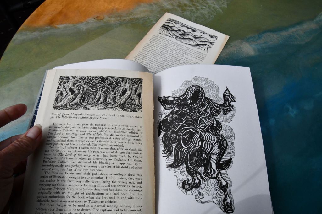 Inside Volume one, The Fellowship of the Ring, is a bit from a newspaper dated 1977, and two pages from a book from the Folio Society, 1978, with an editorial about this set of volumes.