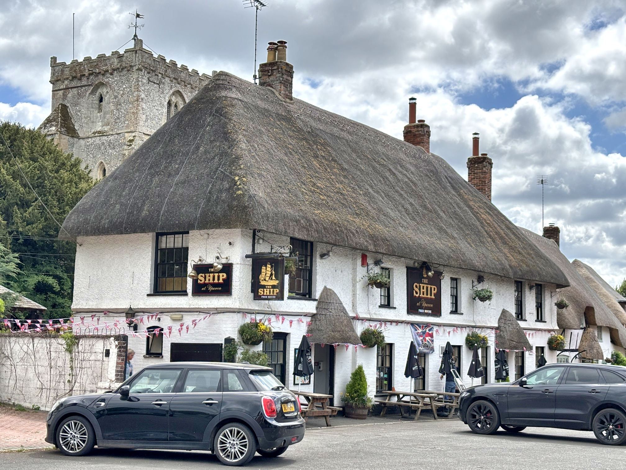 The Ship at Upavon with St. Mary the Virgin church.